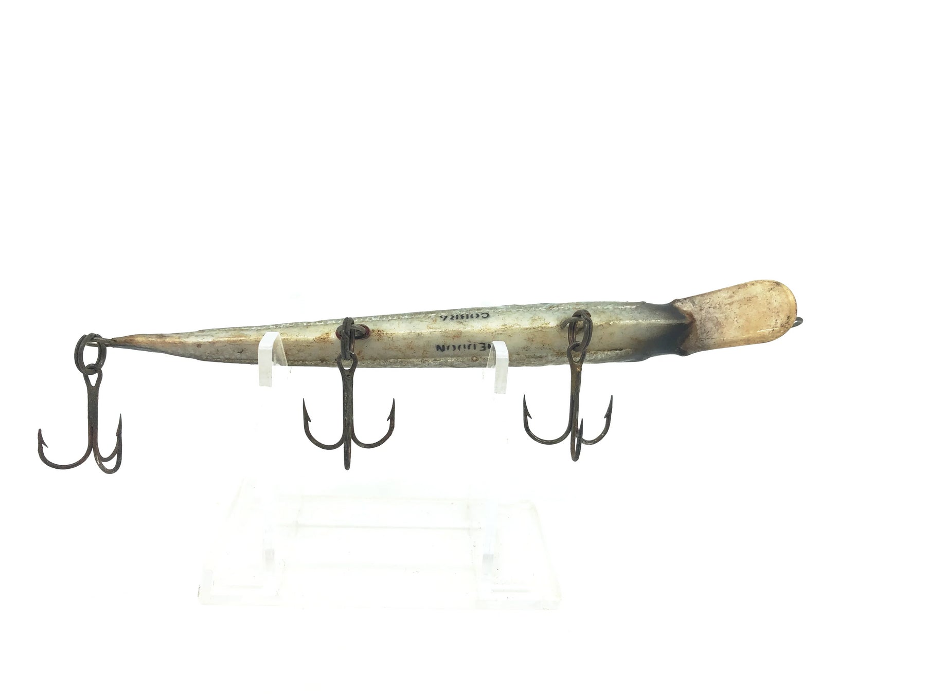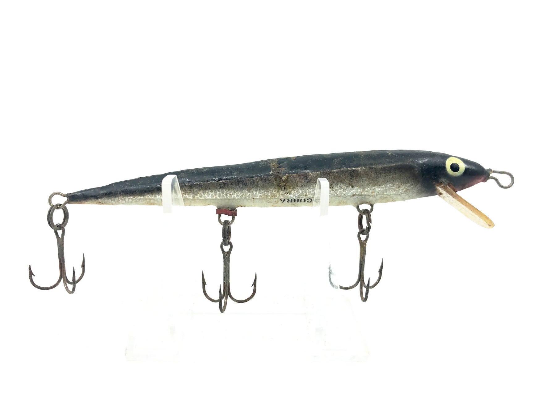 Heddon Wood Cobra, SF Silver Shiner Color. Body is about 4 3/4" long. Used lure with some wear and marks, in overall ok condition. See photos. Harder to find lure. Great vintage Heddon lure here.