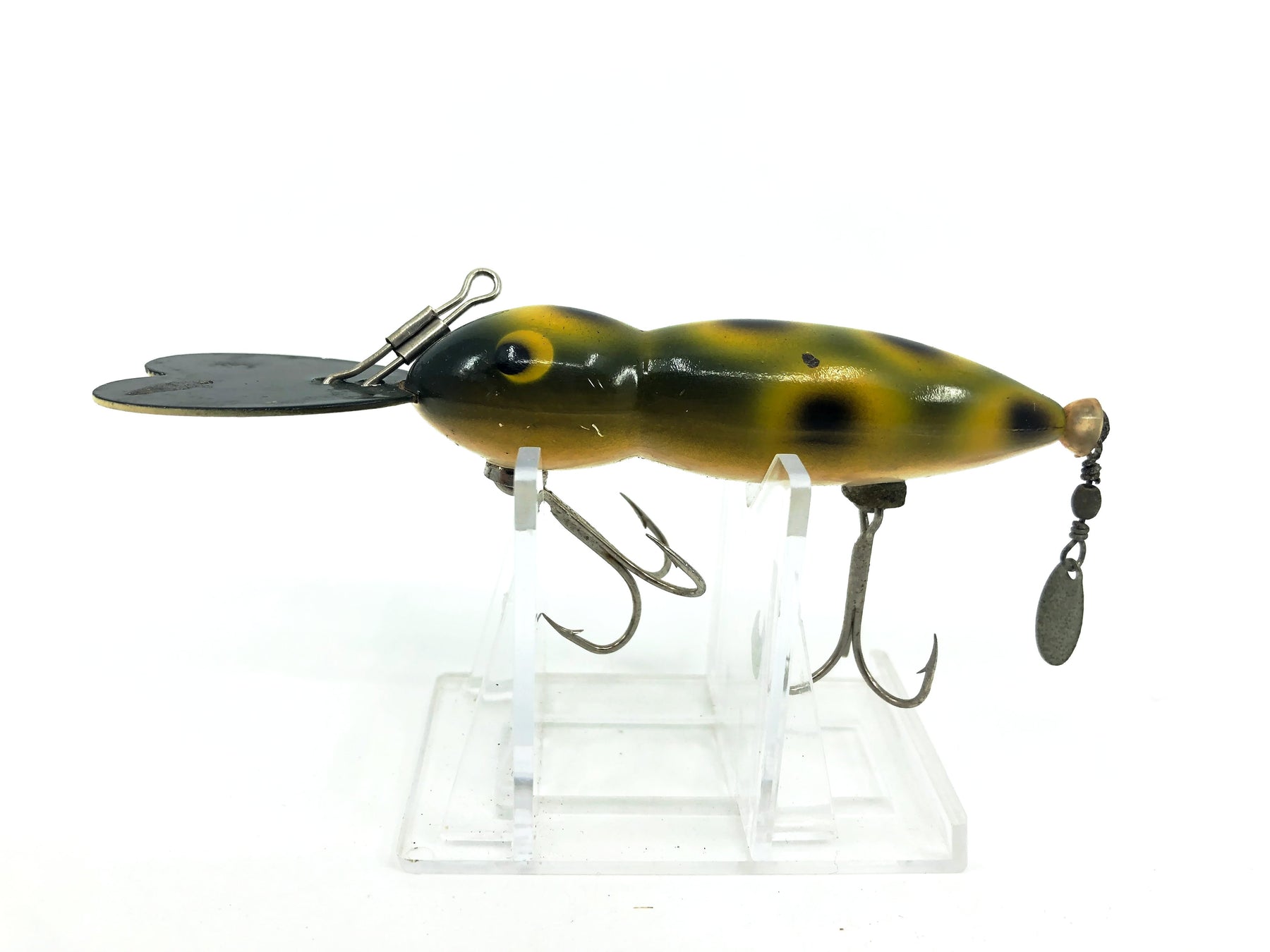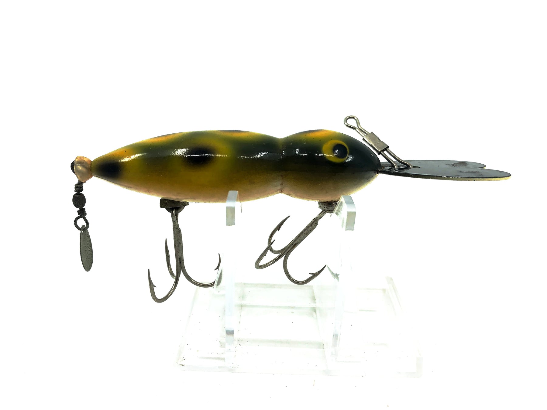 Whopper Stopper Hellbender, Frog Color. About 3 3/4" long including the lip. Used vintage lure with some wear and marks but overall good condition. These lures are collectible and highly sought after by fisherman. Killer on bass! Fish or collect this vintage classic bait. See photos.