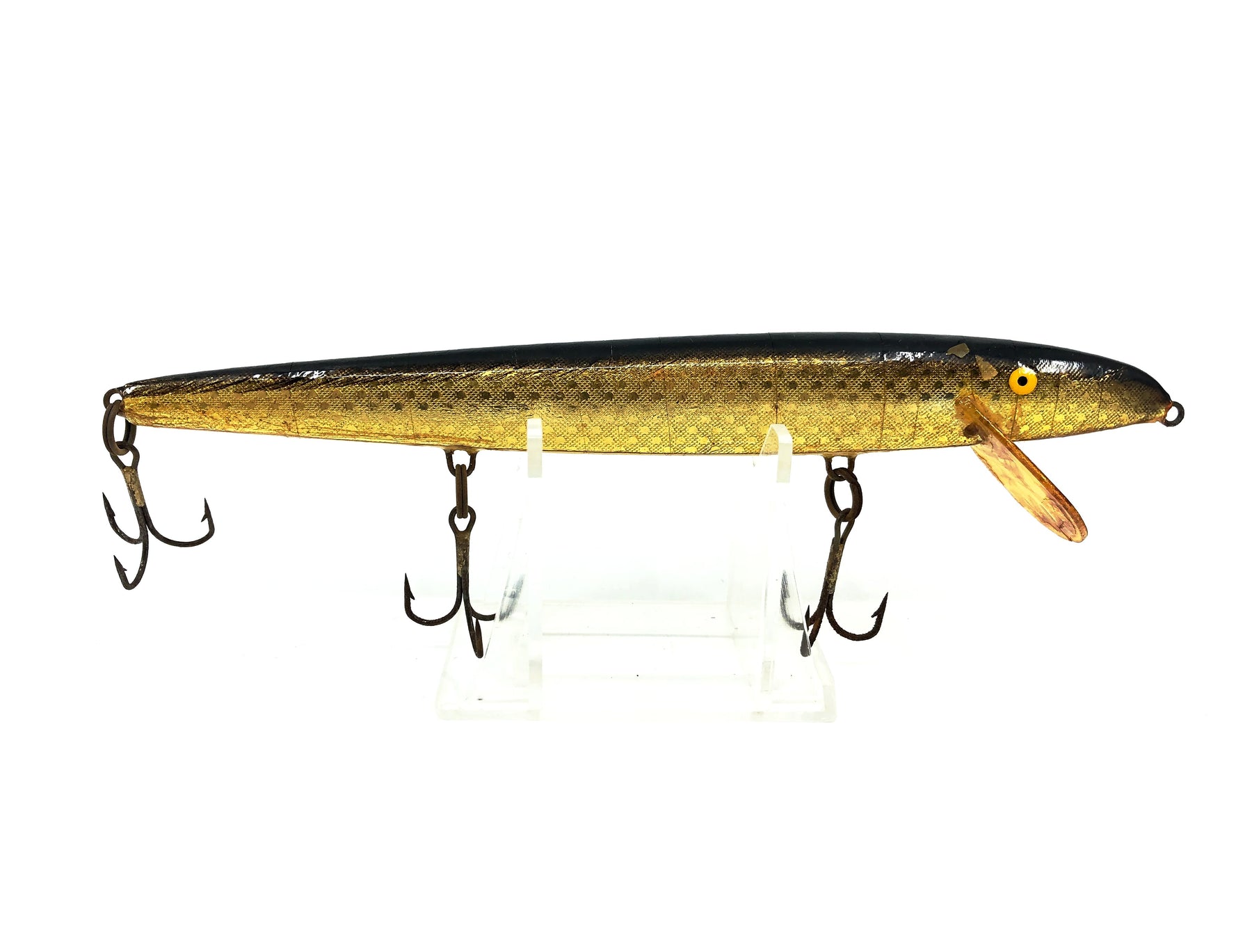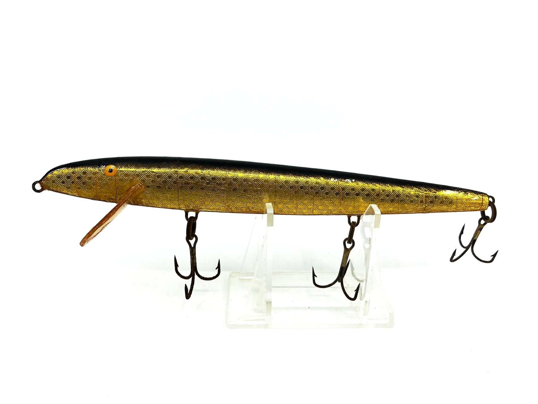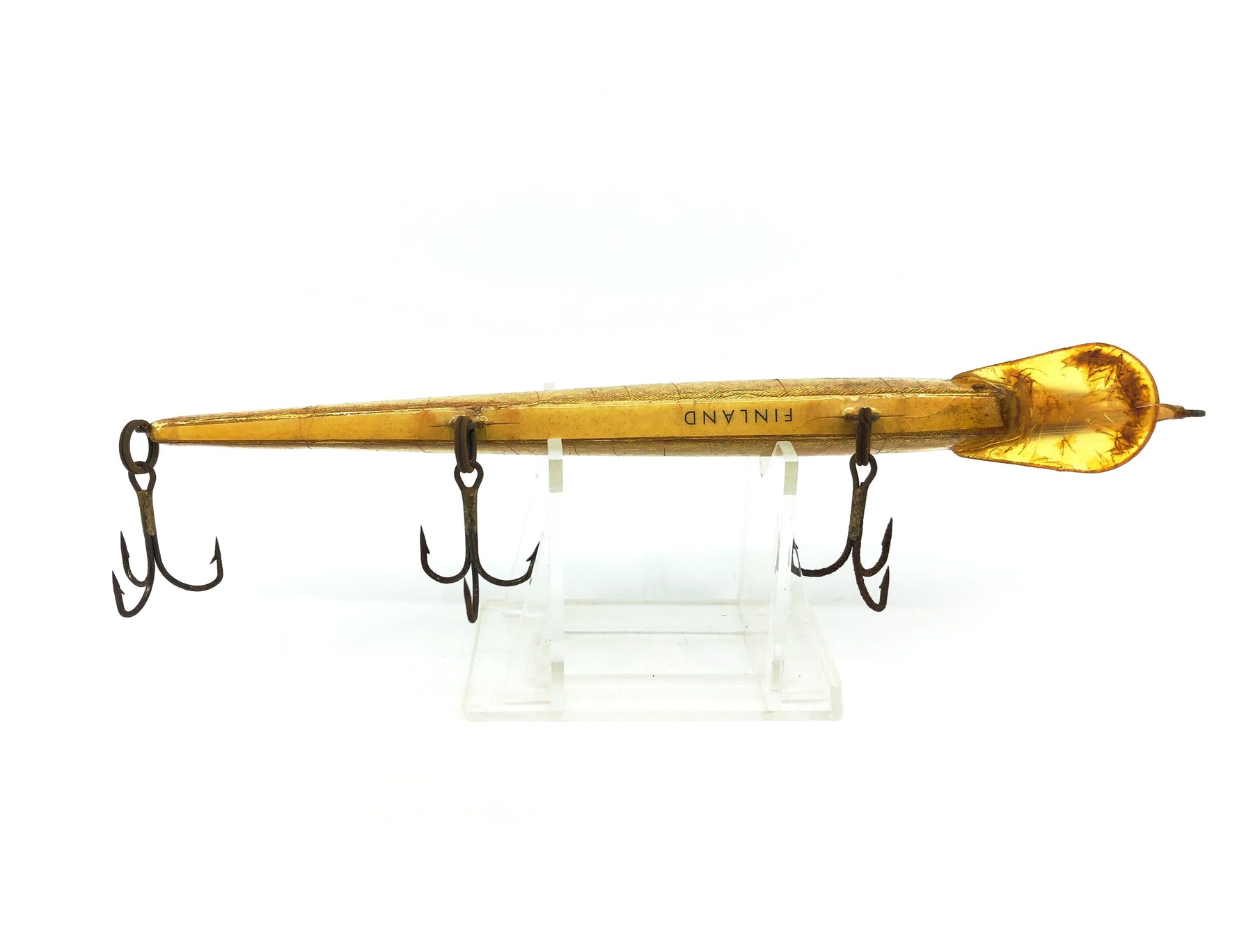 Palsa Floating Minnow Musky Size, Gold/Black Back Color. Great vintage lure here from out of Finland. About 7" long. Used but in good condition with minor wear, see photos. Fish or collect this great vintage piece!