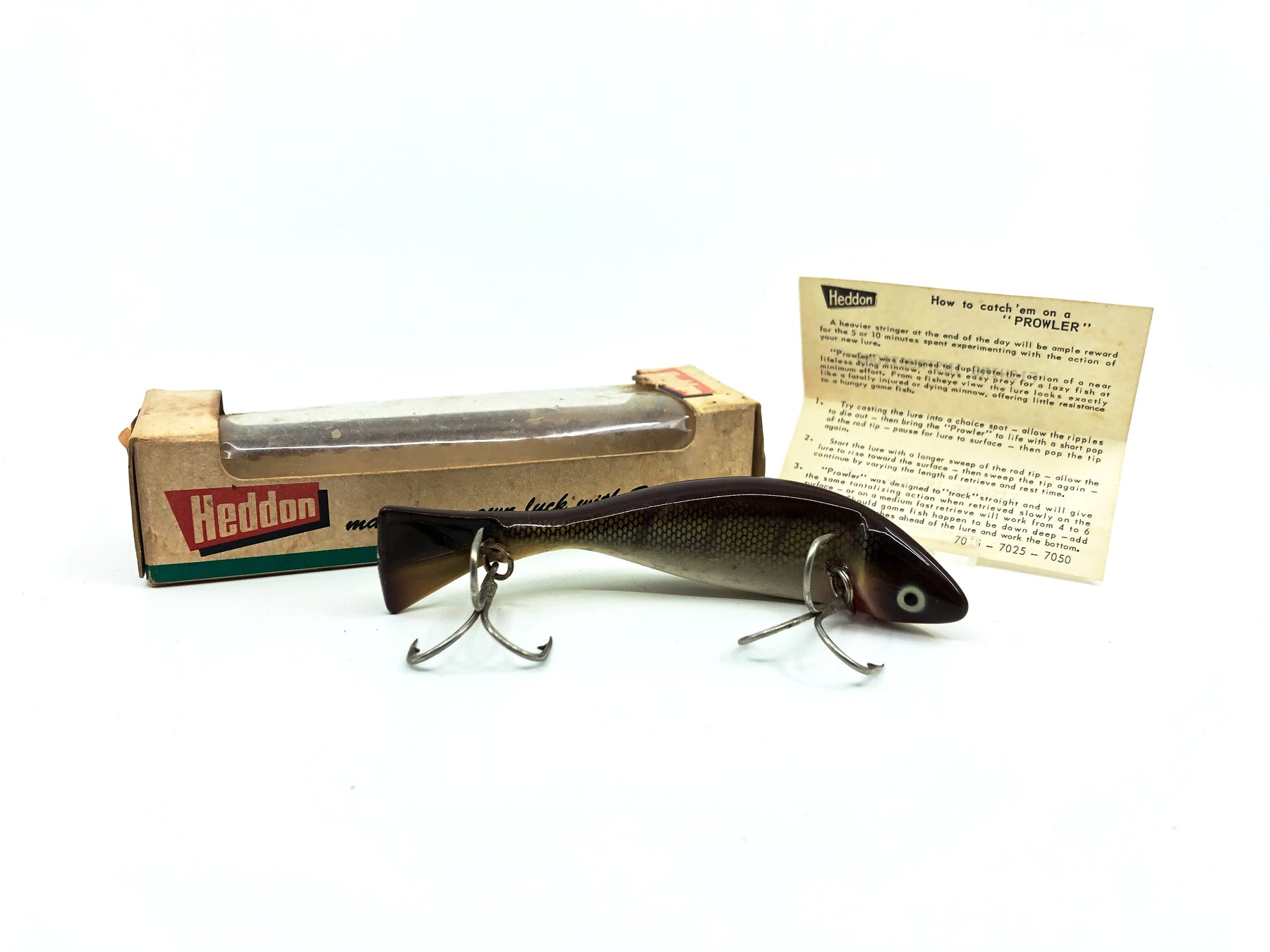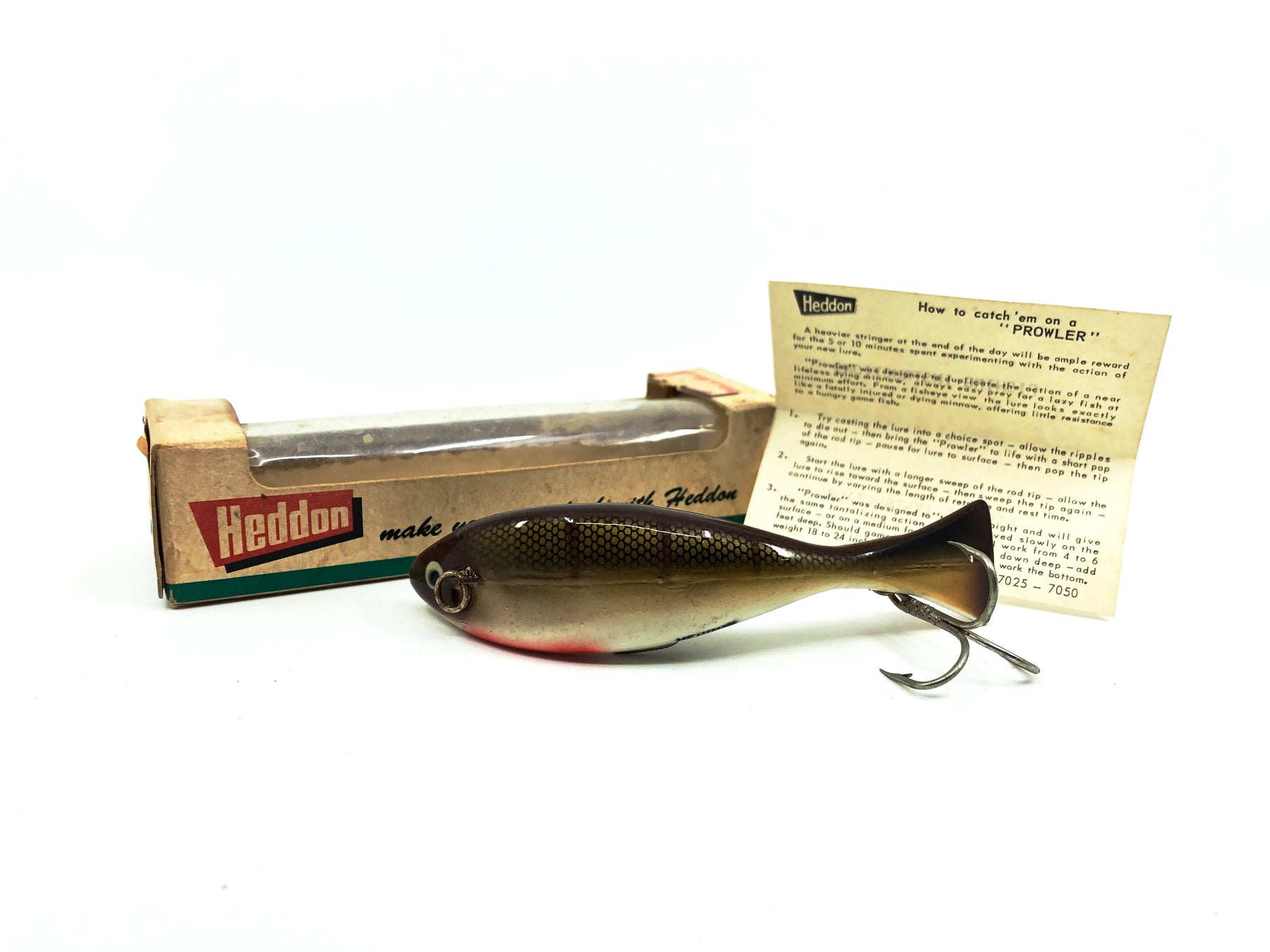 Heddon Prowler 7050, BWB Bronze/White/Brown Color with Box.  Nice lure here.  Box in good shape with some wear, lure in great shape.  Don't find this one very often.  Grab it while you can.