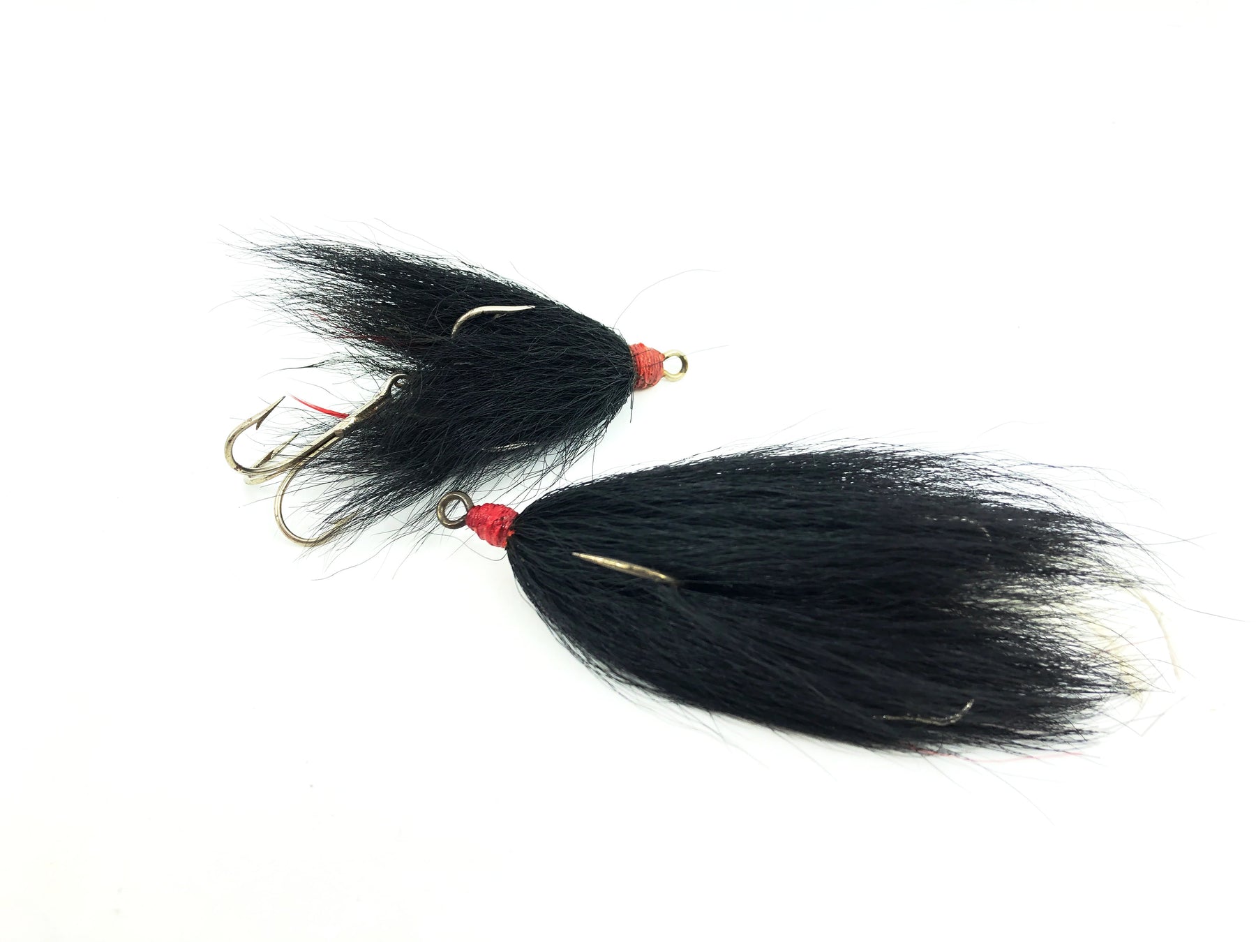 Tandem Bucktail Combo. This pack includes two vintage tandem bucktail musky sized treble hooks (one is a single followed by a treble). Both are in good condition. Great way to replace hooks on your favorite spinner bait!
