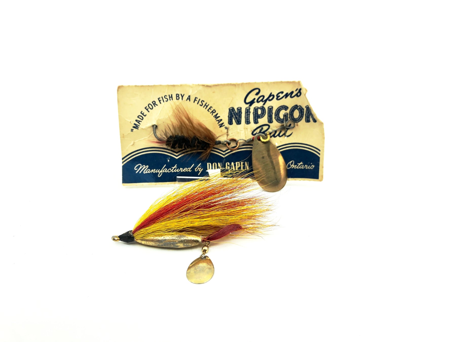 Weber No.11 Weighted Fly & Vintage Gapen's Nipigon Spinner on Card. Great combo here for any fishermen of collector. The fly is about 2" long and the new spinner on card is 2 3/4" long. Both lures would look perfect in your collection or tackle box. See photos.