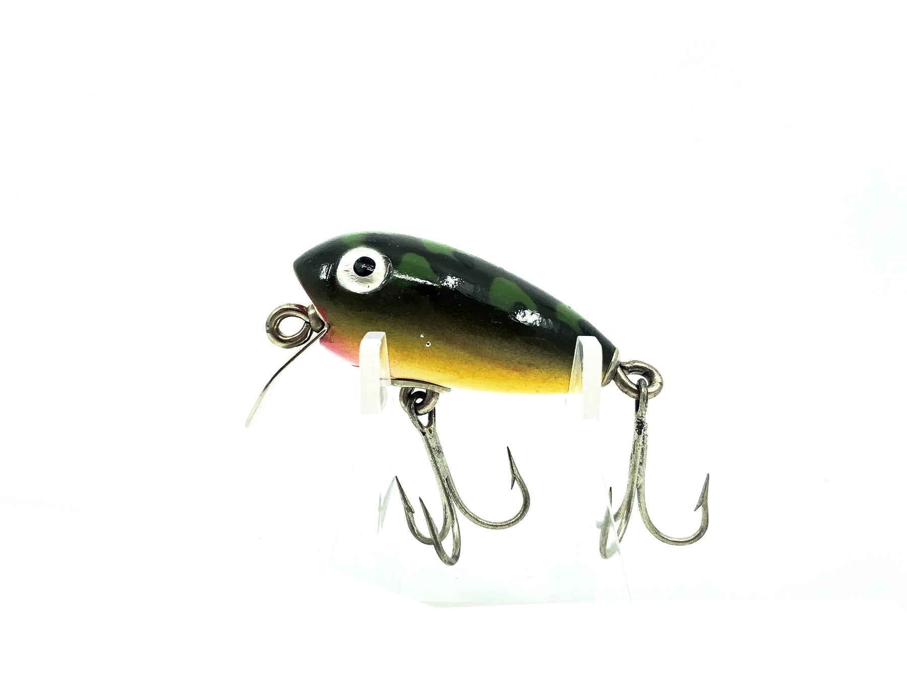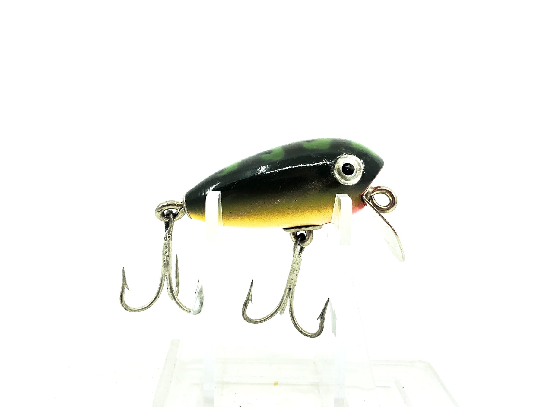 Shakespeare Grumpy, F Frog Color. Harder to find Shakespeare lure here. About 1 3/4" long. This lure has some minor wear and marks but in overall good condition, see photos. Fish or collect.