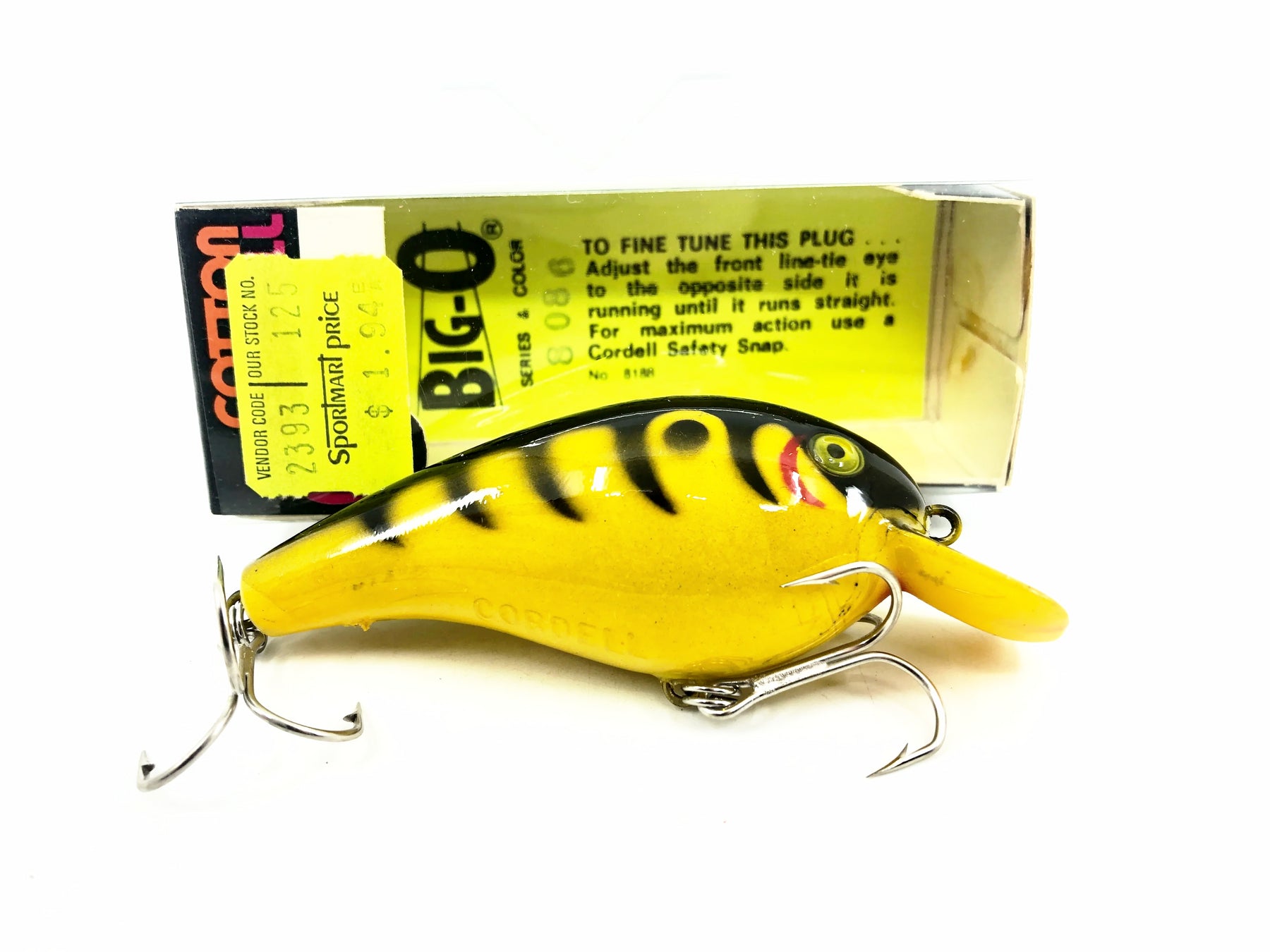 Cotton Cordell 8000 Big-O, #86 8086 Tiger Yellow Color w/Box. About 3" long not including the lip. Lure is new in box (a little storage wear, dirt) and the box is in good condition, see photos. One of the most successful fishing lures ever made. Fish or collect!