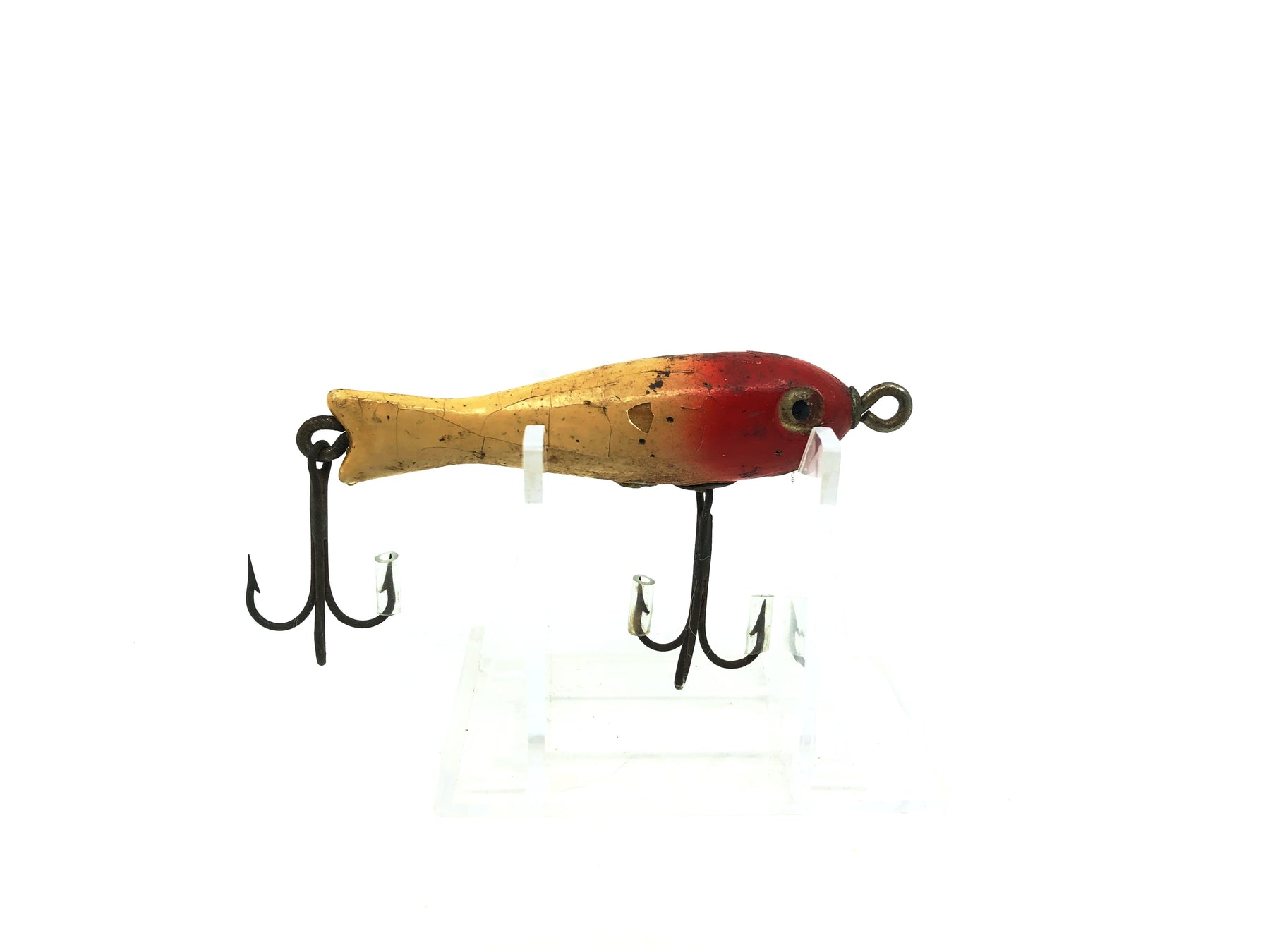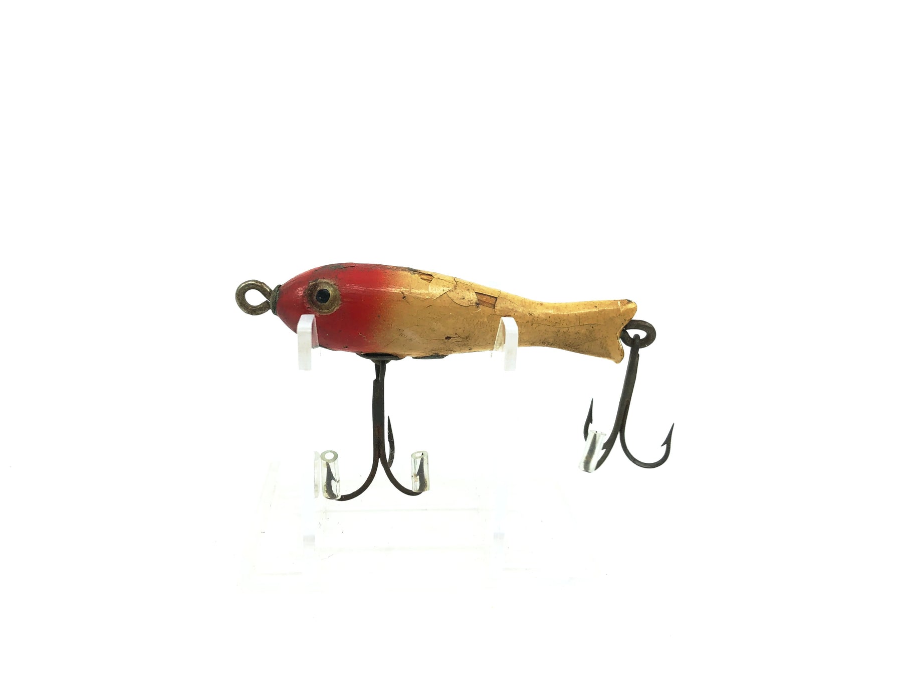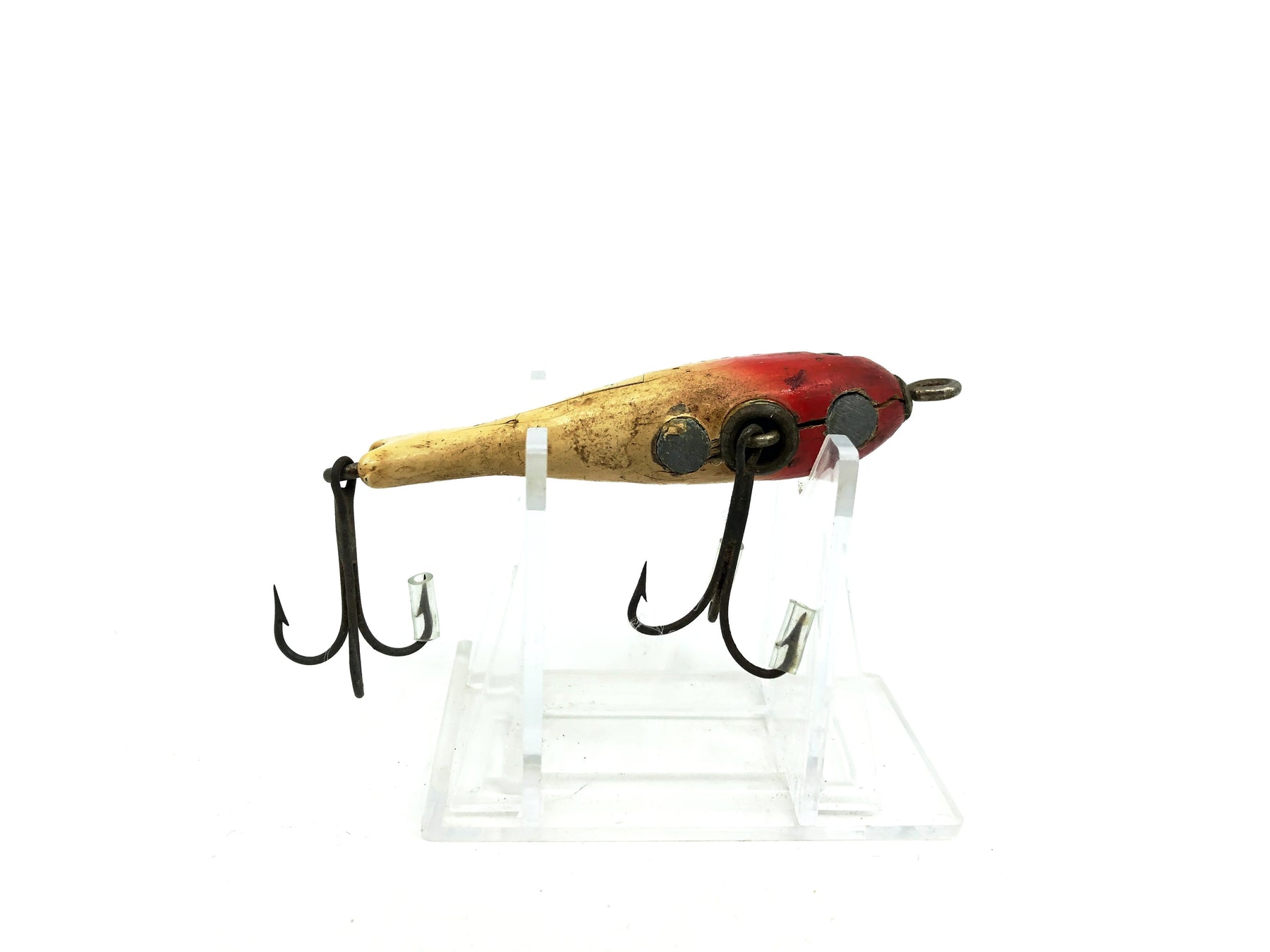 Shakespeare Sea Witch, Red Head/White Color. About 2 5/8" long body. Used vintage lure with some wear as shown but still in overall ok condition. See photos. One of the all time classic fishing lures. Fish or collect. Tough to find these old wooden mice.