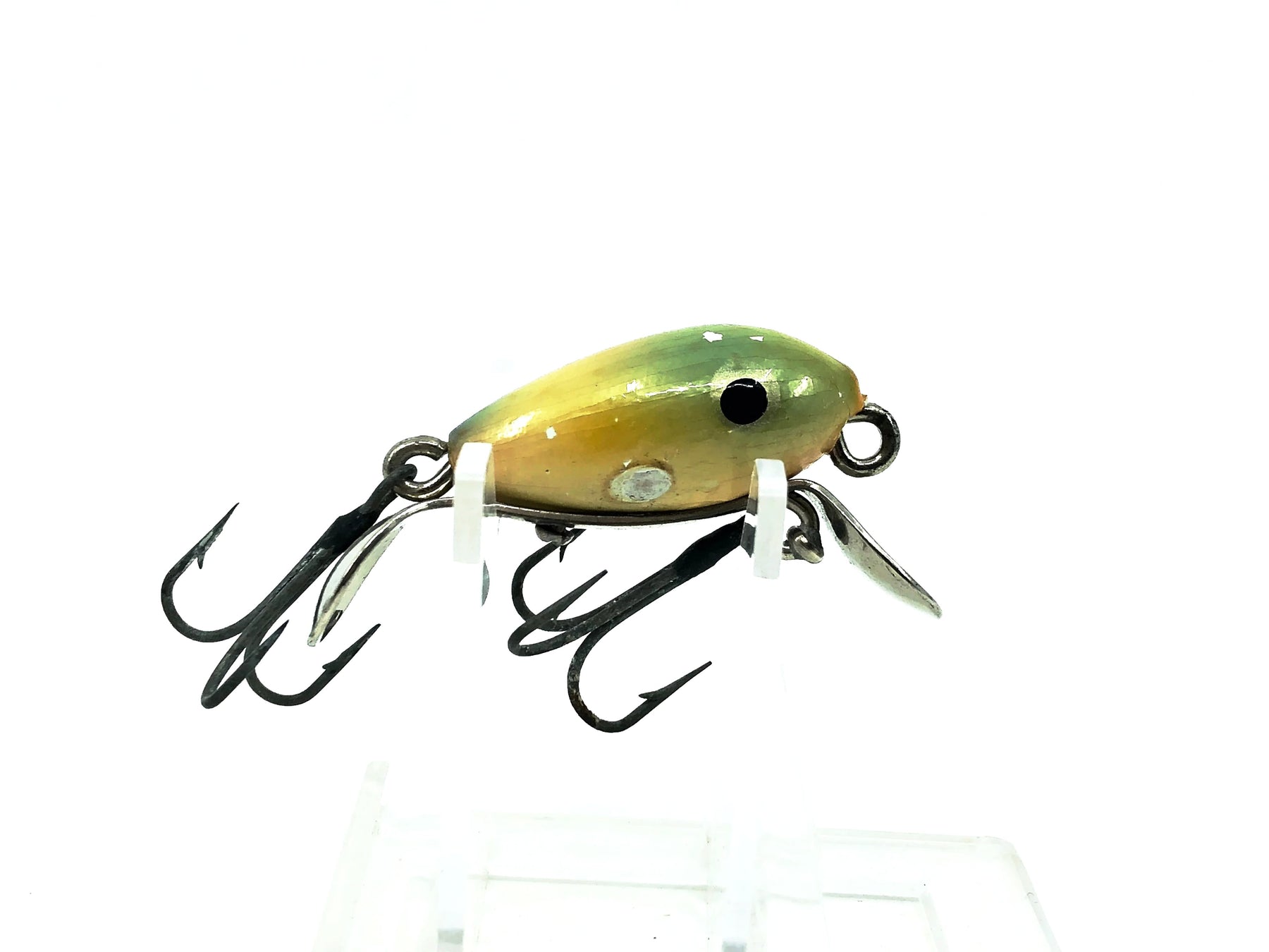 Shakespeare Dopey, P Pearl Color. Harder to find Shakespeare here. About 2 1/4" long. Used lure with some wear and a large mark on the side but overall in good condition, see photos. Fish or collect.