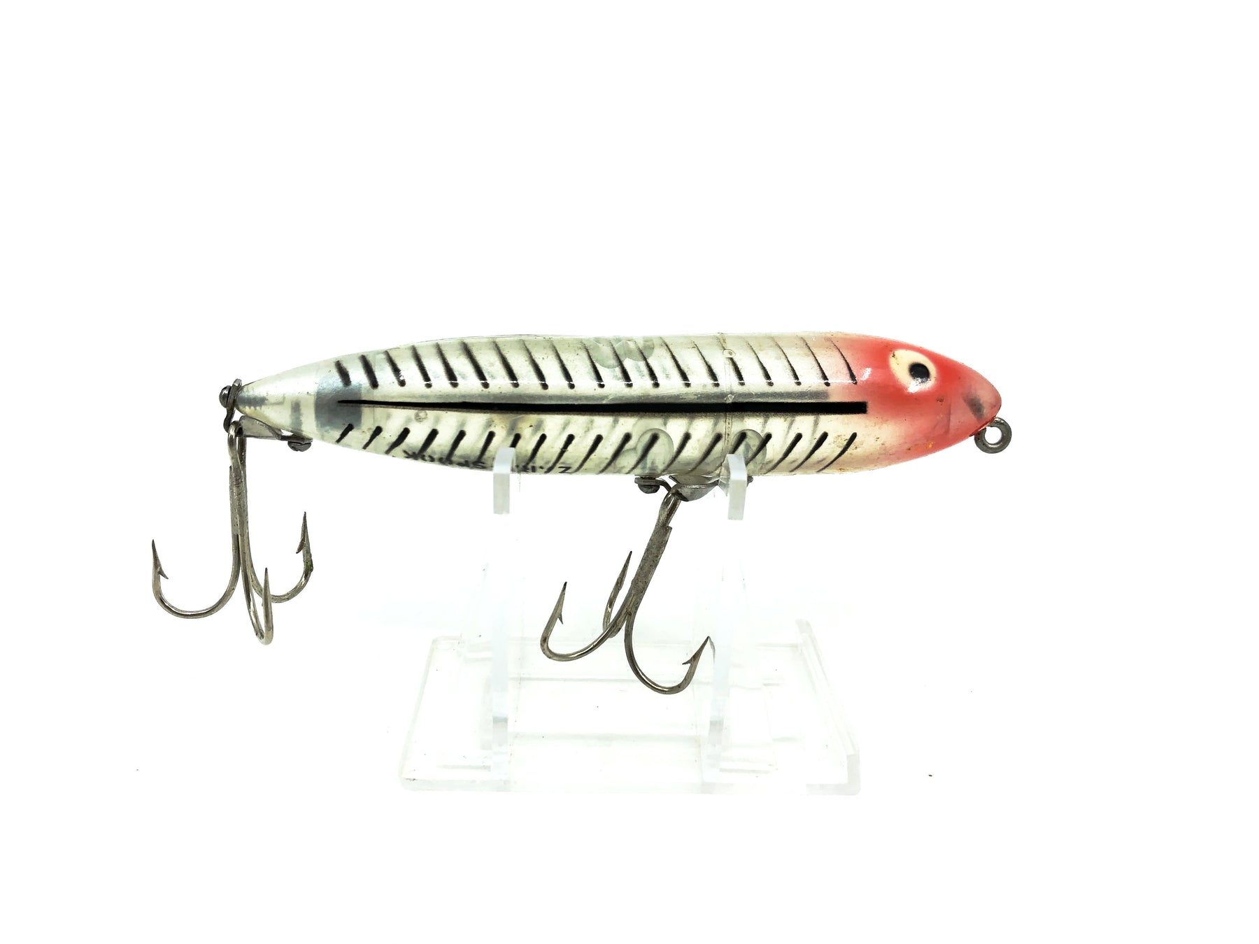 Heddon Original Zara-Spook Sway Back, XRS Silver Shore Color. Hard to find collectible bait. About 4 1/4" long. Lure is used with some minor wear but in good condition, see photos. Classic Heddon lure. Fish or collect.