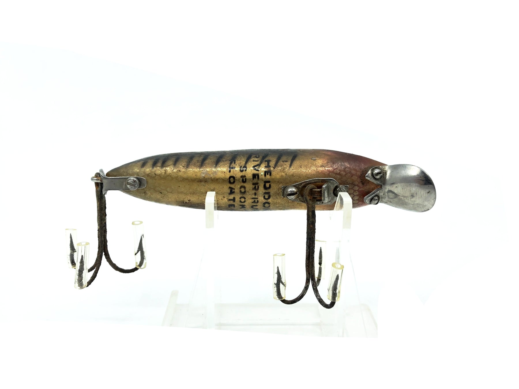 Heddon River Runt Spook Floater 9400, XRS Silver Shore Minnow Color. 1st gen hardware on this classic Heddon. About 3" long. Used lure with some marks and wear on it. See photos but still overall ok condition. Tougher version to find. One of the most iconic fishing lures of all time. Collect or fish you can't go wrong with a Heddon River Runt.