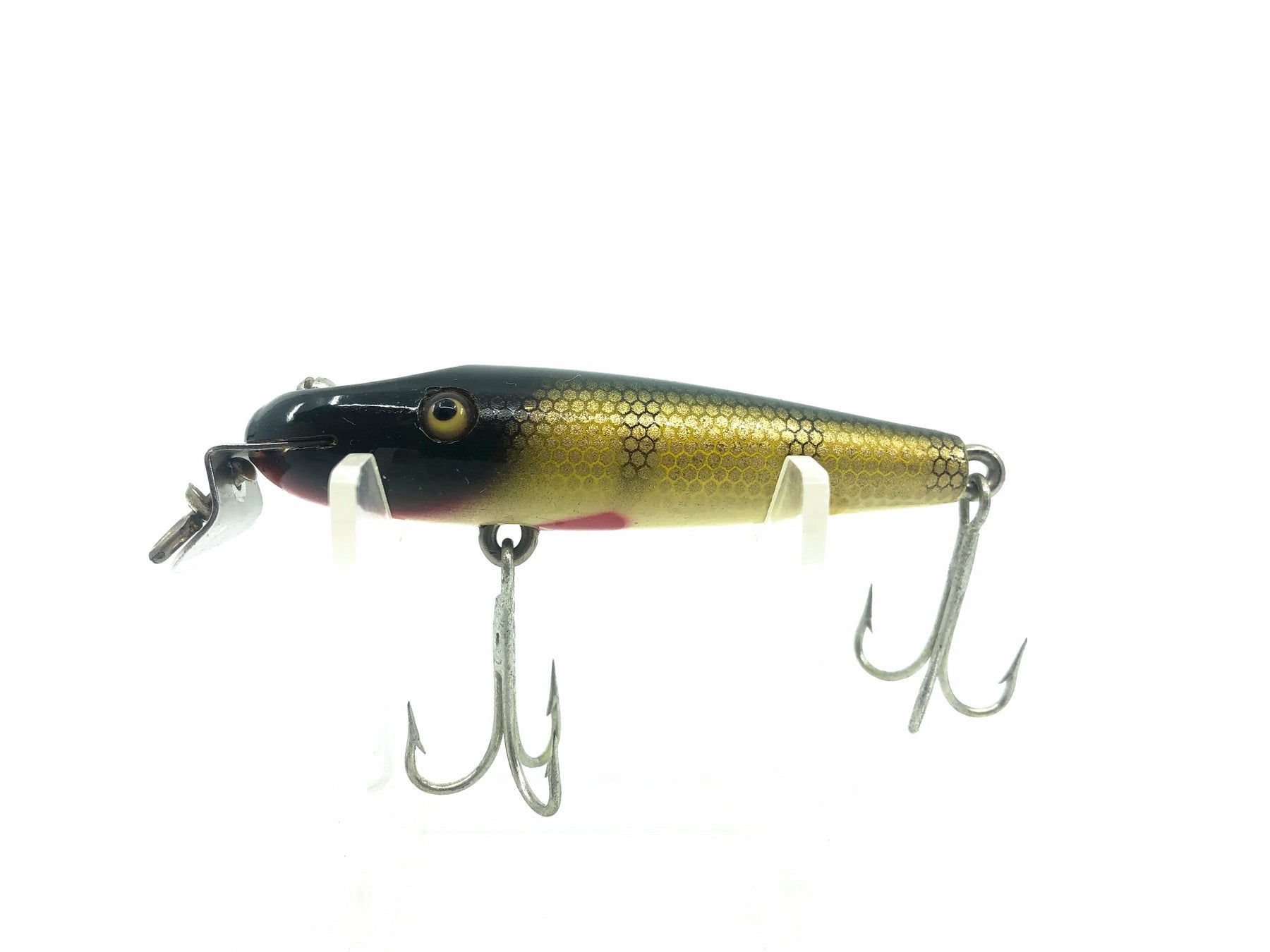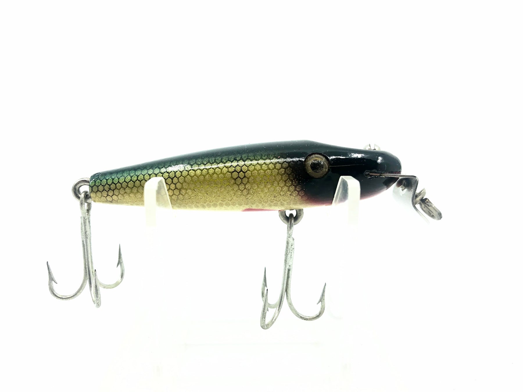 Creek Chub 2200 Midget Pikie 2201, #01 Perch Scale Color. Great older Pikie with glass eyes. Lure is about 2 3/4" long not including the lip