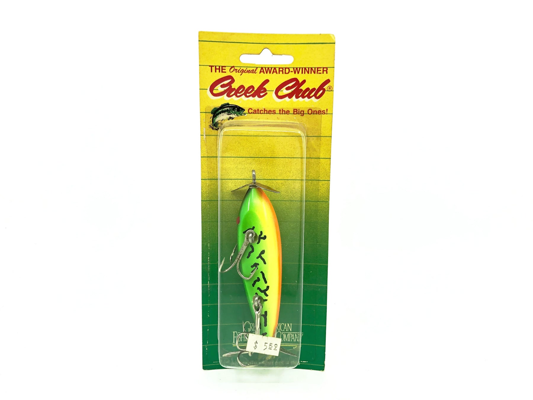 Creek Chub 1500P Injured Minnow, FT Firetiger Color on Card. Tough to find Sioux City Creek Chub Injured Minnow and in a very tough color. About 3 5/8" long. Lure is new on card and the card is in good condition. See photos. Fish or collect you can't go wrong with a vintage Creek Chub Injured Minnow. Made for over 50 years for a reason! Take this one back out fishing.