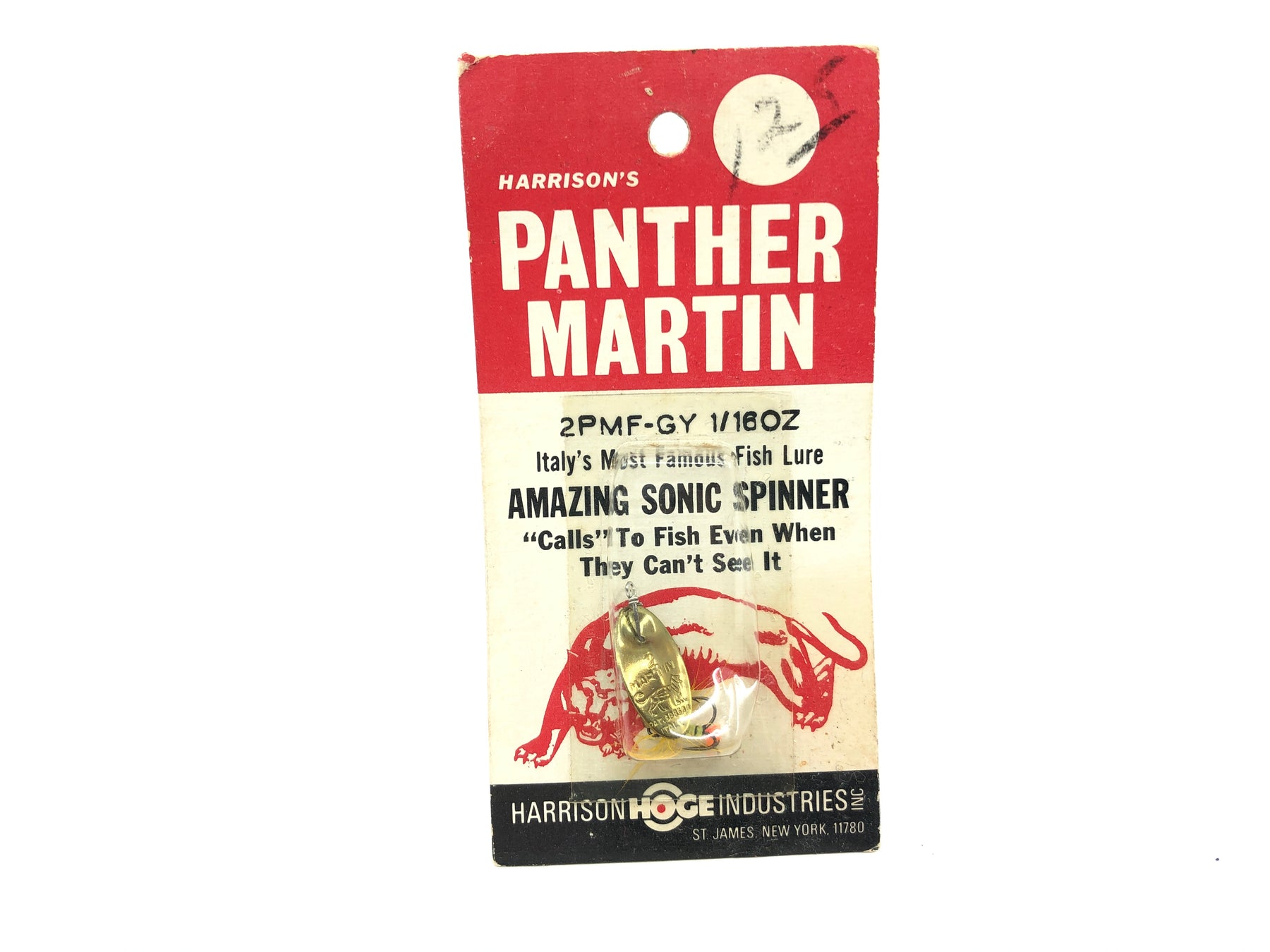 Harrison Hoge Panther Martin 2PMF-GY 1/16 OZ Sonic Spinner New on Card Old Stock. Cool old stock here dating back quite a few decades. Collect or fish.