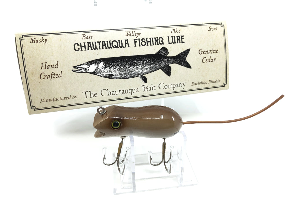 Chautauqua Swimming Mouse in Brown Mouse Color.  Great new lure offering here from the Chautauqua Bait Company.  We are proud to offer their newest baits in a variety of colors and options.  This one here is in a fantastic Brown Mouse Color.  Hand crafted, hand painted and simply beautiful.  Collect or fish you can't go wrong with these.