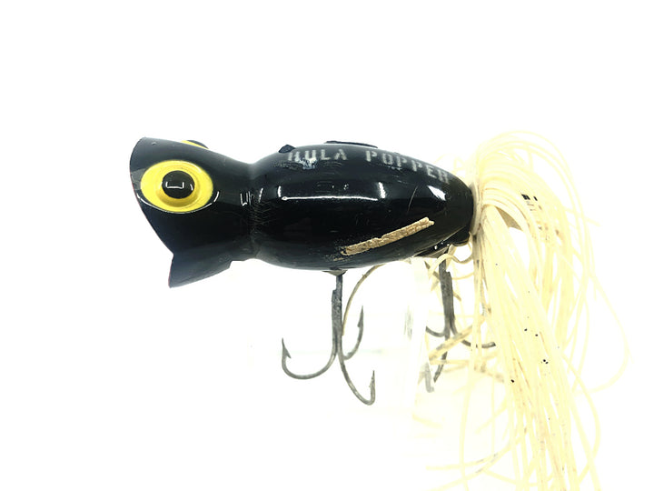Arbogast Hula Popper Black Color. About 2 1/2" body. Used but in good condition with some plastic damage on the back of it, see photos. Great for fishing.