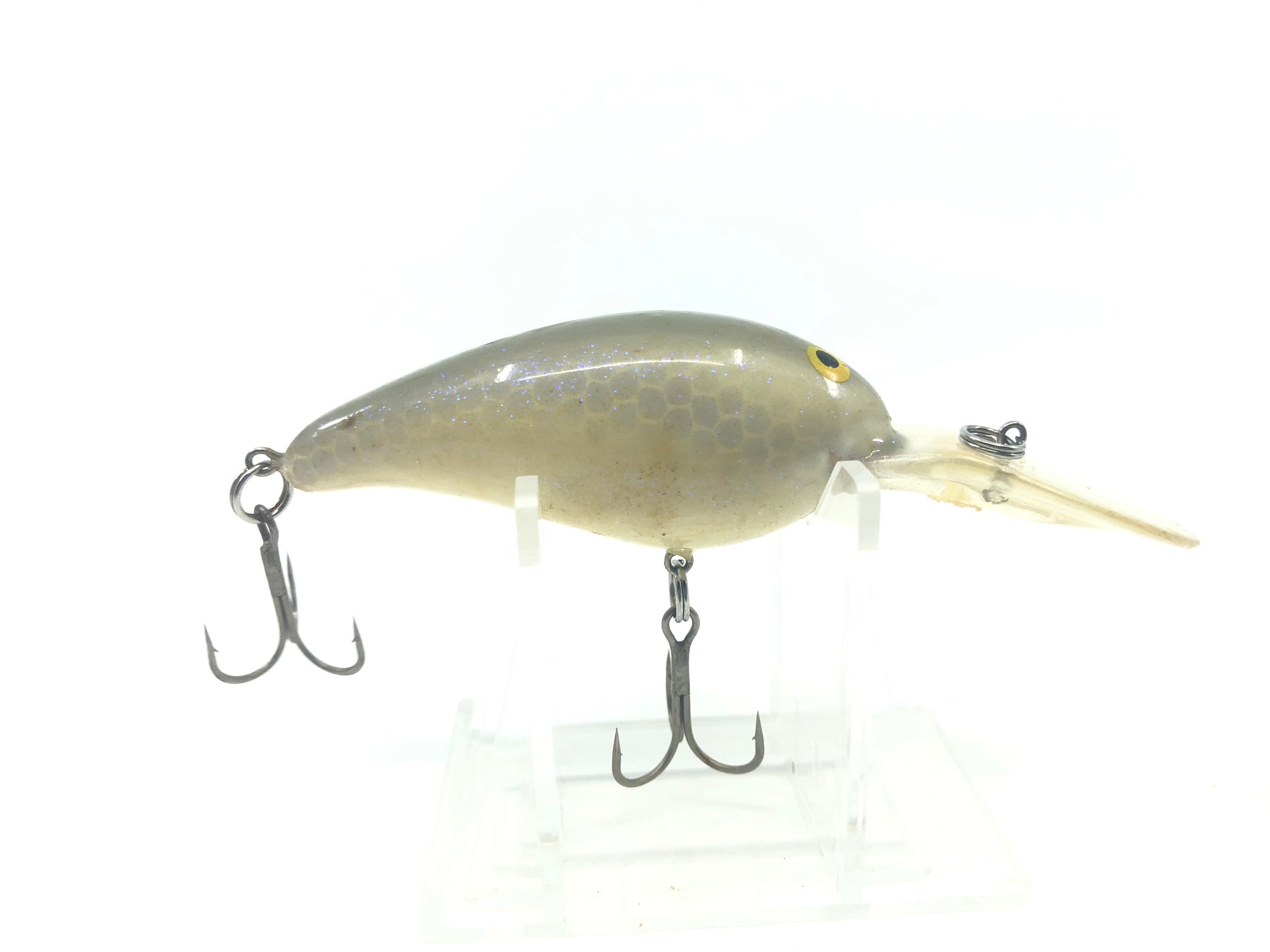 Bill Norman White With Silver back Scale Crankbait. Lure is about 2 3/4" long not including the lip. Has a large chip in the paint on the left side. Other than that this lure is in pretty good condition just waiting to be fished.