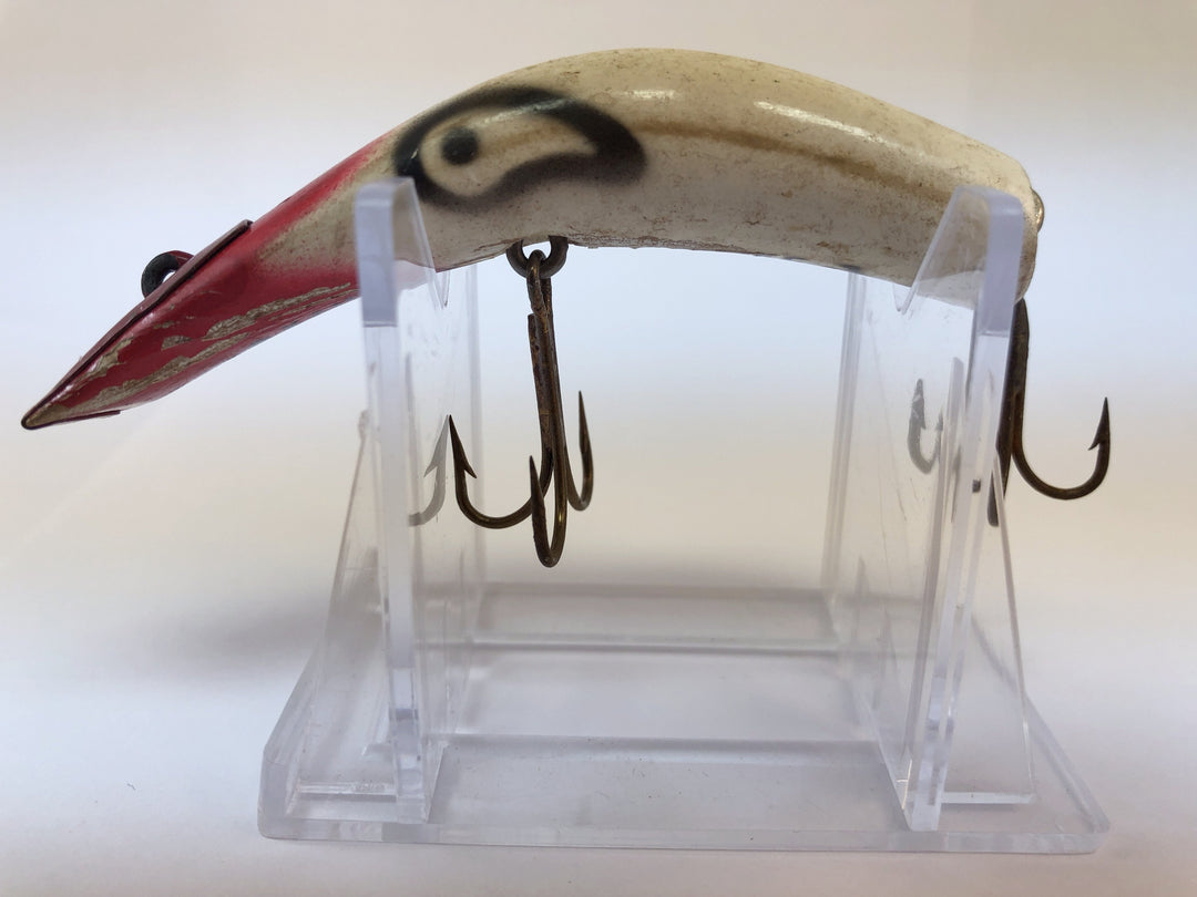 Wooden Kautzky Lazy Ike-3 Red and White. This lure has chips on the paint job. Would look nice in your collection or tackle box.