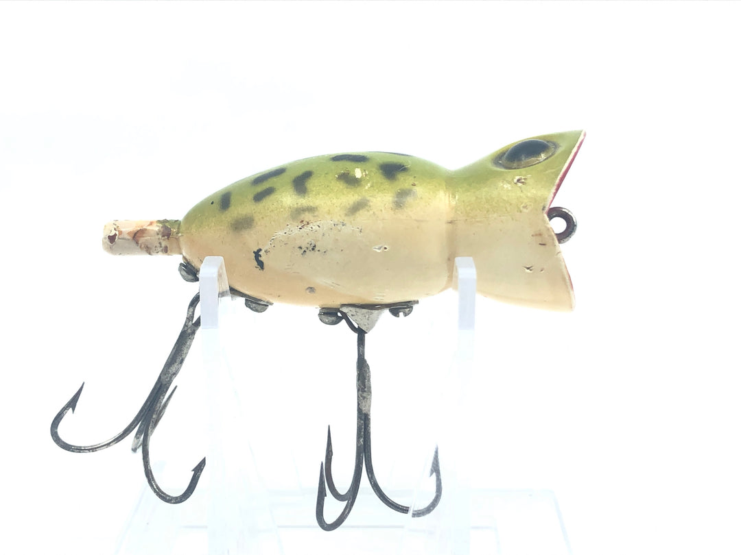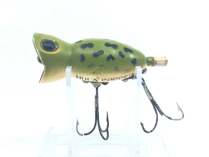 Arbogast Hula Popper Frog. At about 2 1/2" long this lure is in good condition with some stains but overall this lure would look great in your collection or tackle box. See photos.