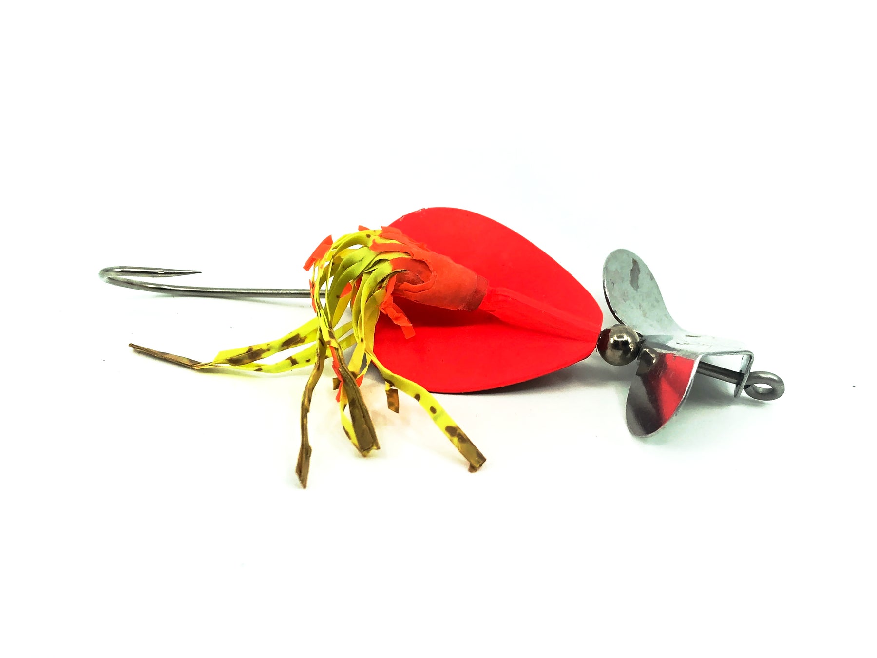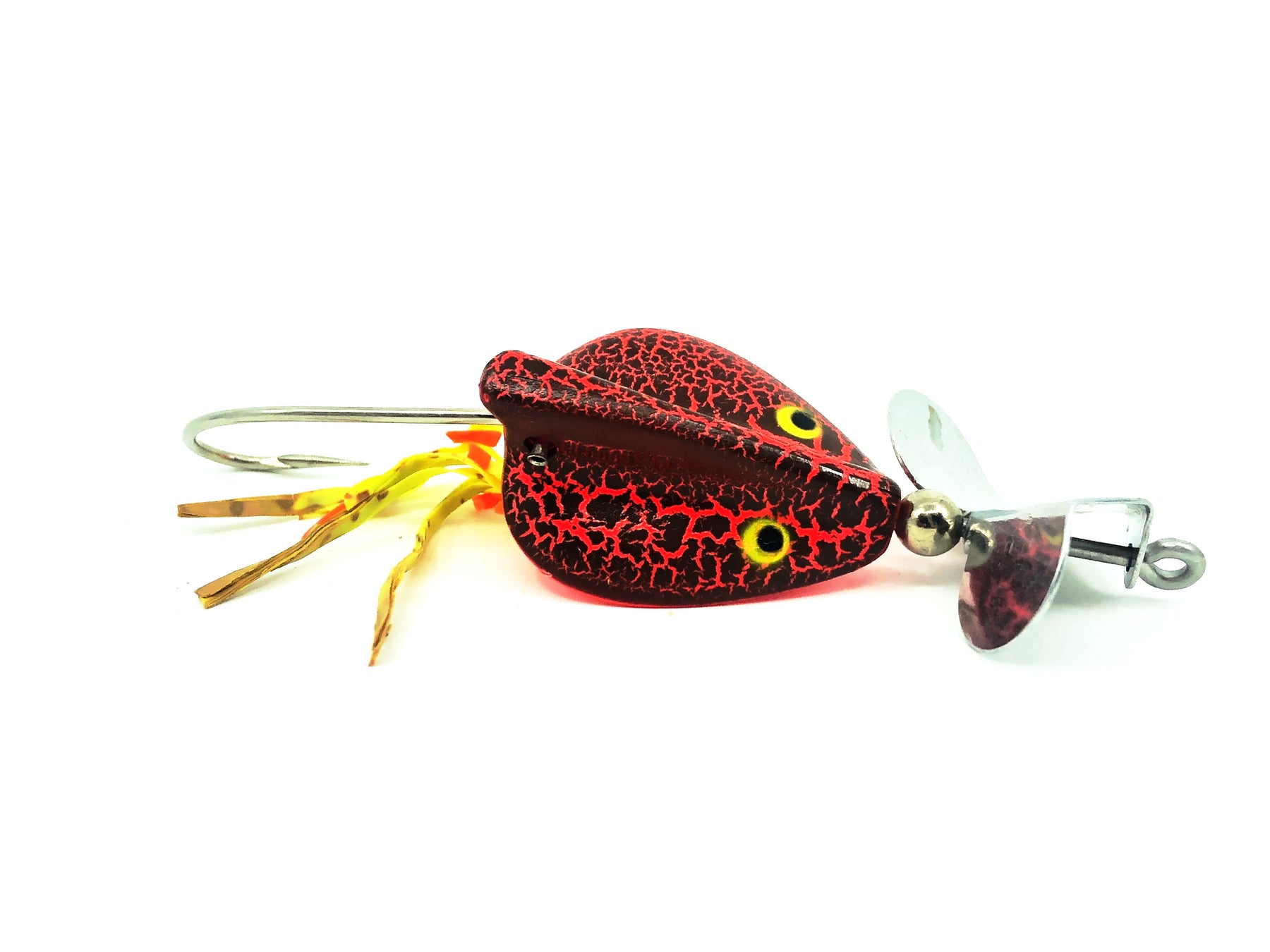Heddon Brush Popper, CBO Crackle Back Orange Color. Harder Heddon lure to find. About 4" long with hook. This 1/2oz Brush Popper is used but in good condition with minor wear, see photos.