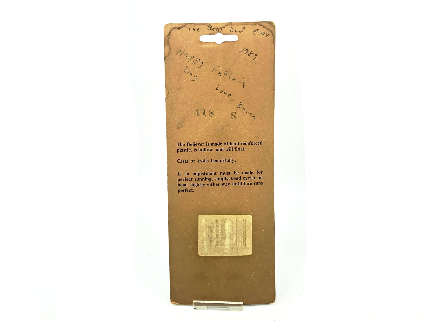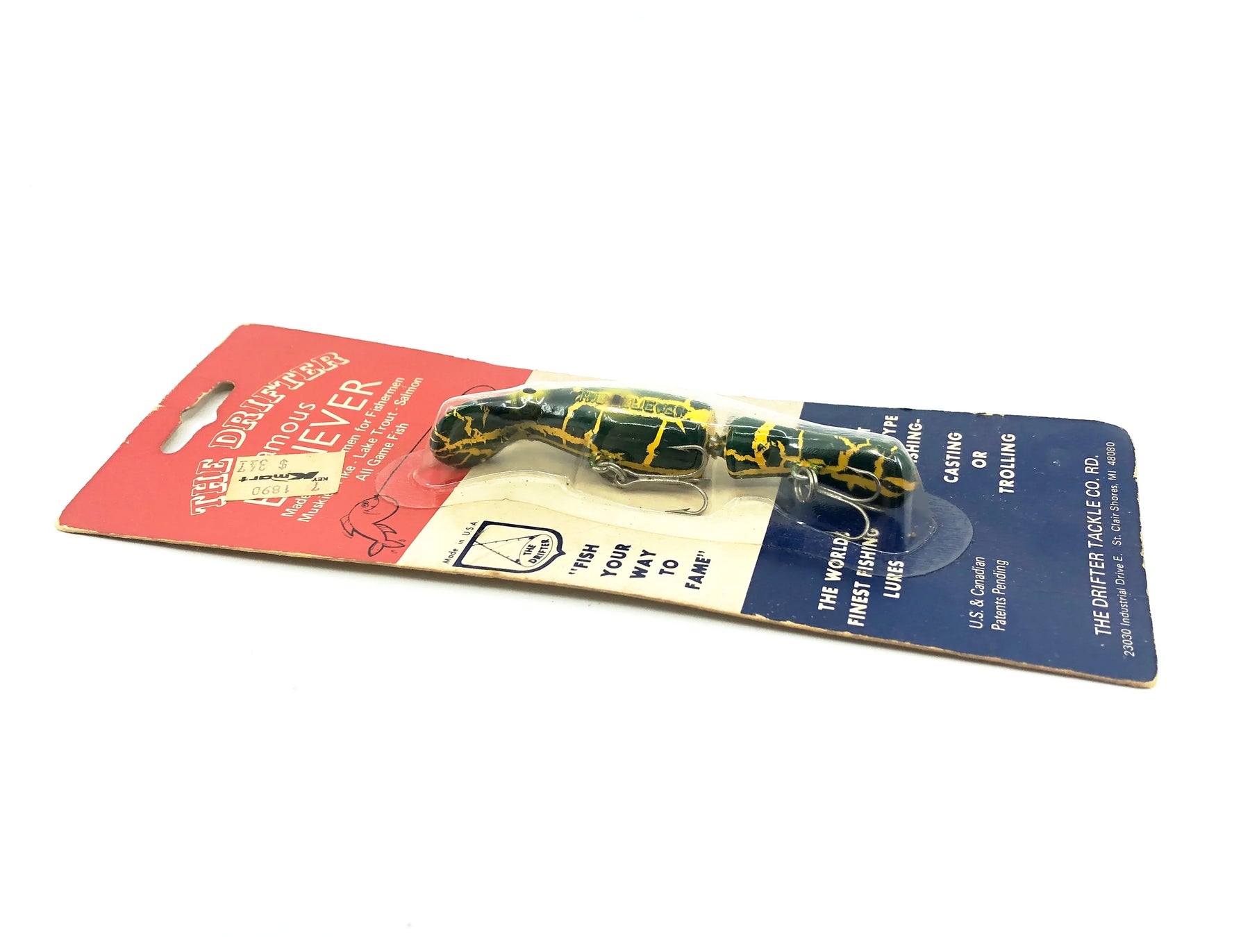 Drifter Tackle Baby Jointed The Believer, Crackle Back Frog Color on Card. Small rare model at about 3 7/8" long. Lure is new on card. Vintage card is in good condition with some minor wear and a father's day message from 1989 written on the back. See photos.  Great for fishing or your collection.  Model 418 S.
