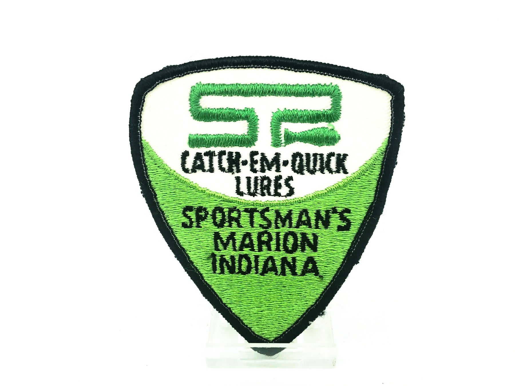Catch-Em-Quick Lures Sportsman's Indiana Country Patch. About 3 1/2" x 3". Unused and in nice overall condition. See photos. These look awesome with your fishing lure display or put on your fishing gear. Add to your collection today!