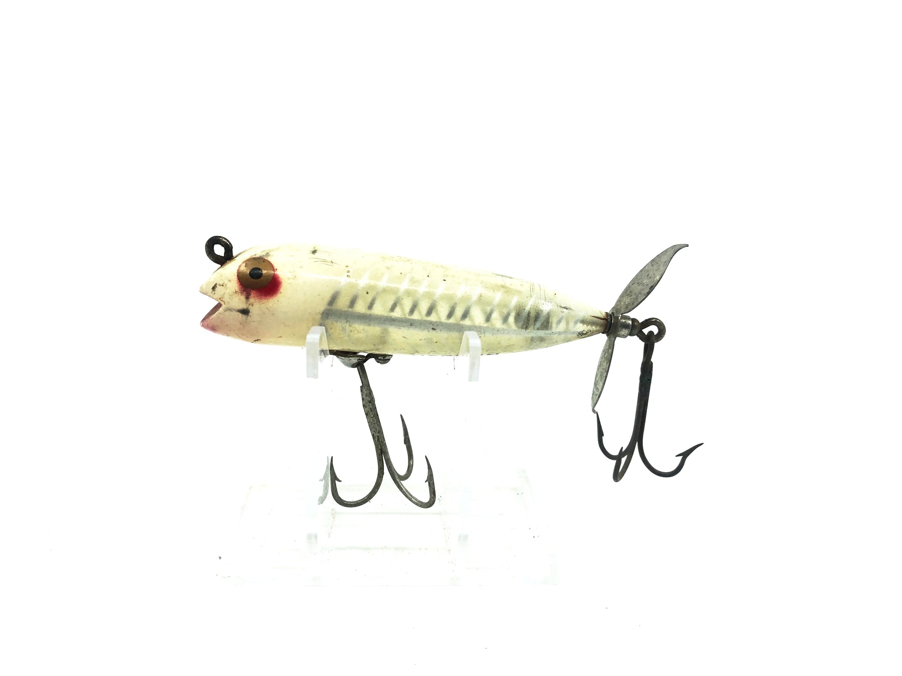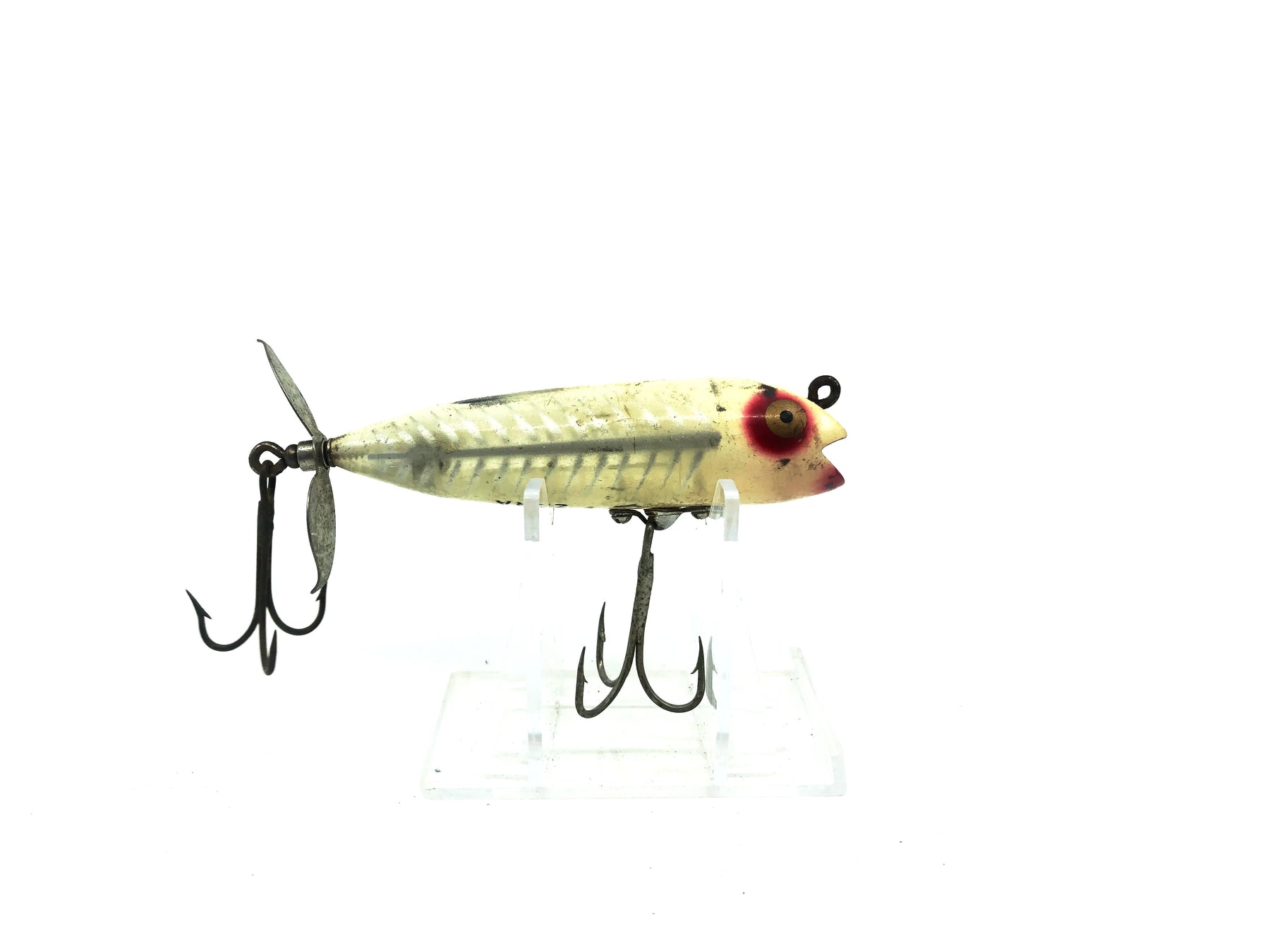Heddon Darting Zara XWB White Shore Minnow Color. Great Heddon bait here. About 3 1/4" long. This lure is used but is in good condition with minor wear and scuffs. May clean up better. See photos. A true Heddon classic here!