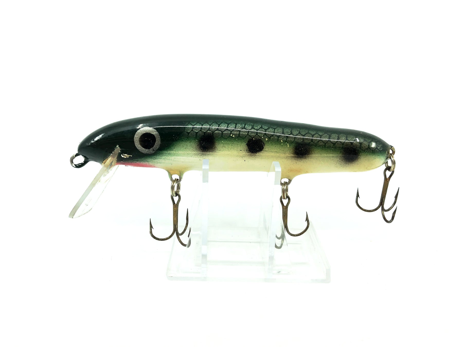 Crane 205 Musky Lure, Spotted Pikie Color. Great wooden bait here. About 4 7/8" long. Used lure fresh from musky territory in northern Wisconsin. Has some minor wear, but overall good condition, see photos. Great Crane lure. Add to your tackle box or collection today.