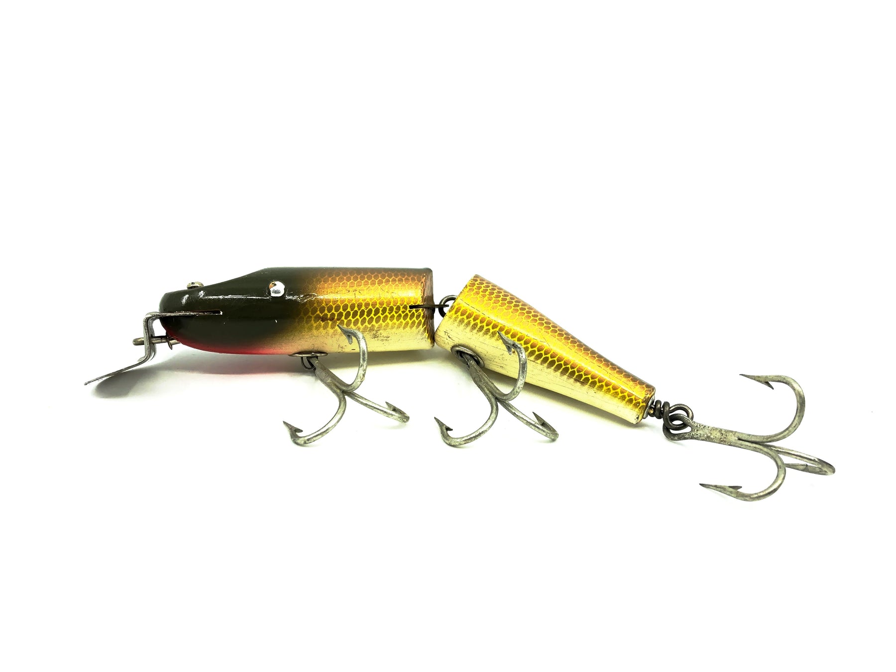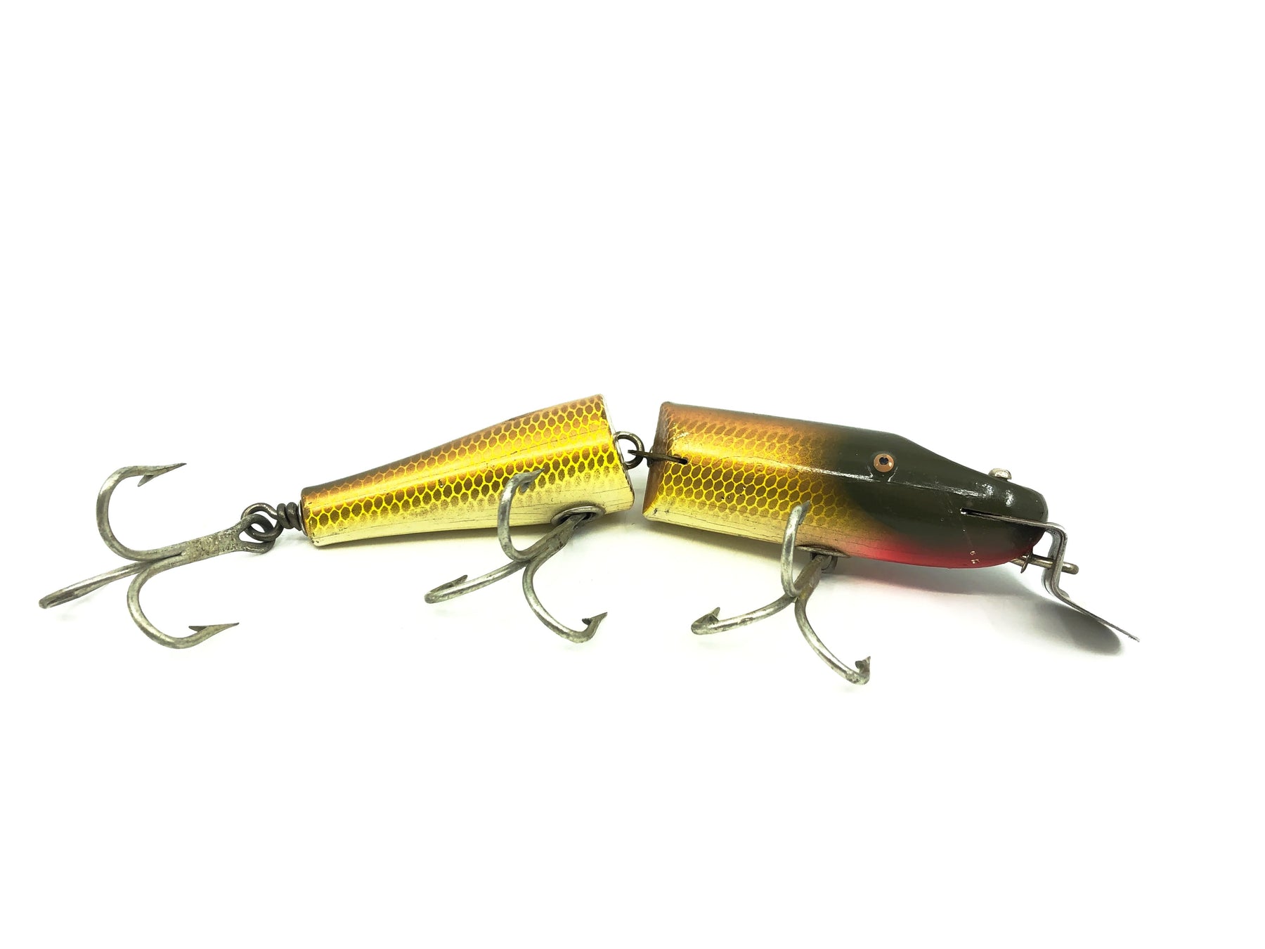 Creek Chub Husky Pikie 3000, Golden Shiner Color 3004. About 6" long body excluding lip. Great vintage lure here. Wooden lure, tack eyes. Lure has some minor wear and marks but in overall good condition.  Nice combo.  This one won't last long so grab it for your collection while you can.  See photos.