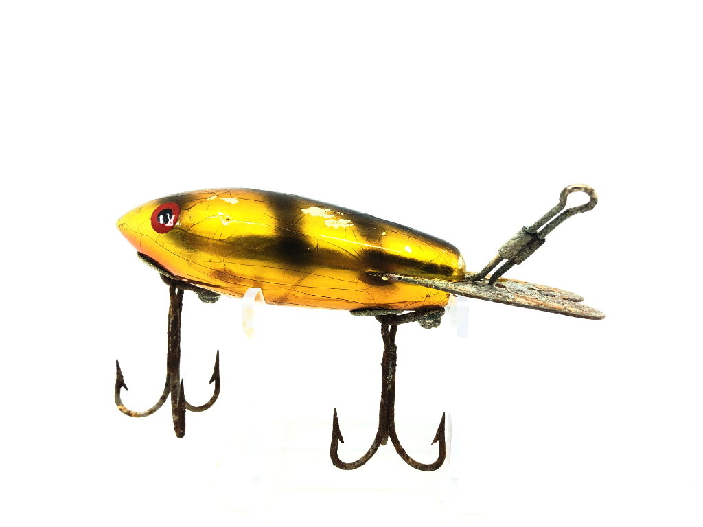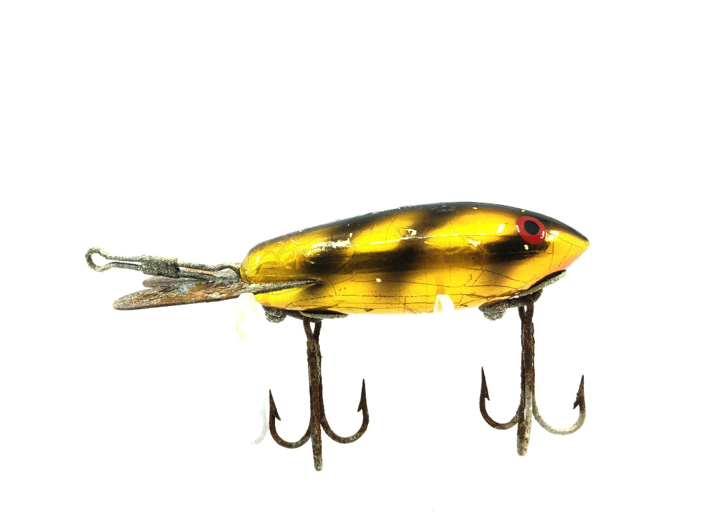 Bomber Wooden 600HD MK Metagold Black Back. About 4" long. Lure is used with rust, and cracks in the paint. Fish or collect. These heavy duty bombers are in high demand, get yours today!