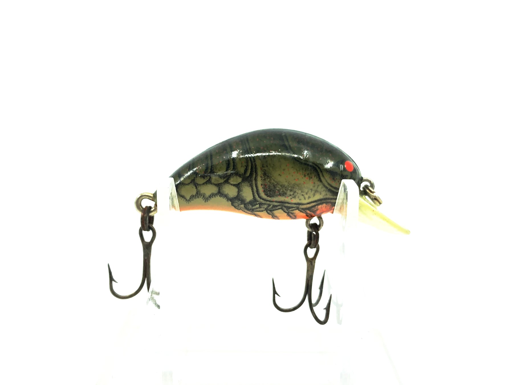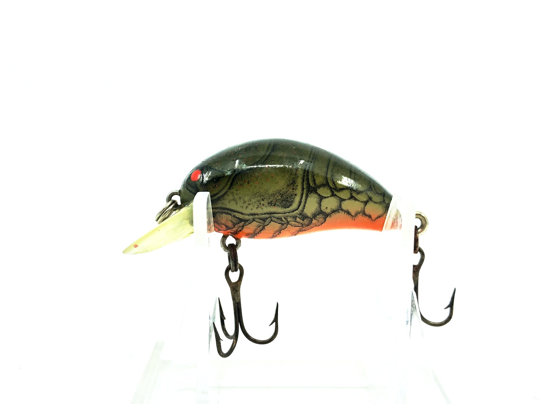 Bomber Model A 1A, XC2 Dark Green Crawfish/Orange Belly Color Screwtail. Classic vintage Bomber color. About 1 7/8" long body not including lip. Lure is used with some minor wear but in overall good condition. See photos. Fish or collect.