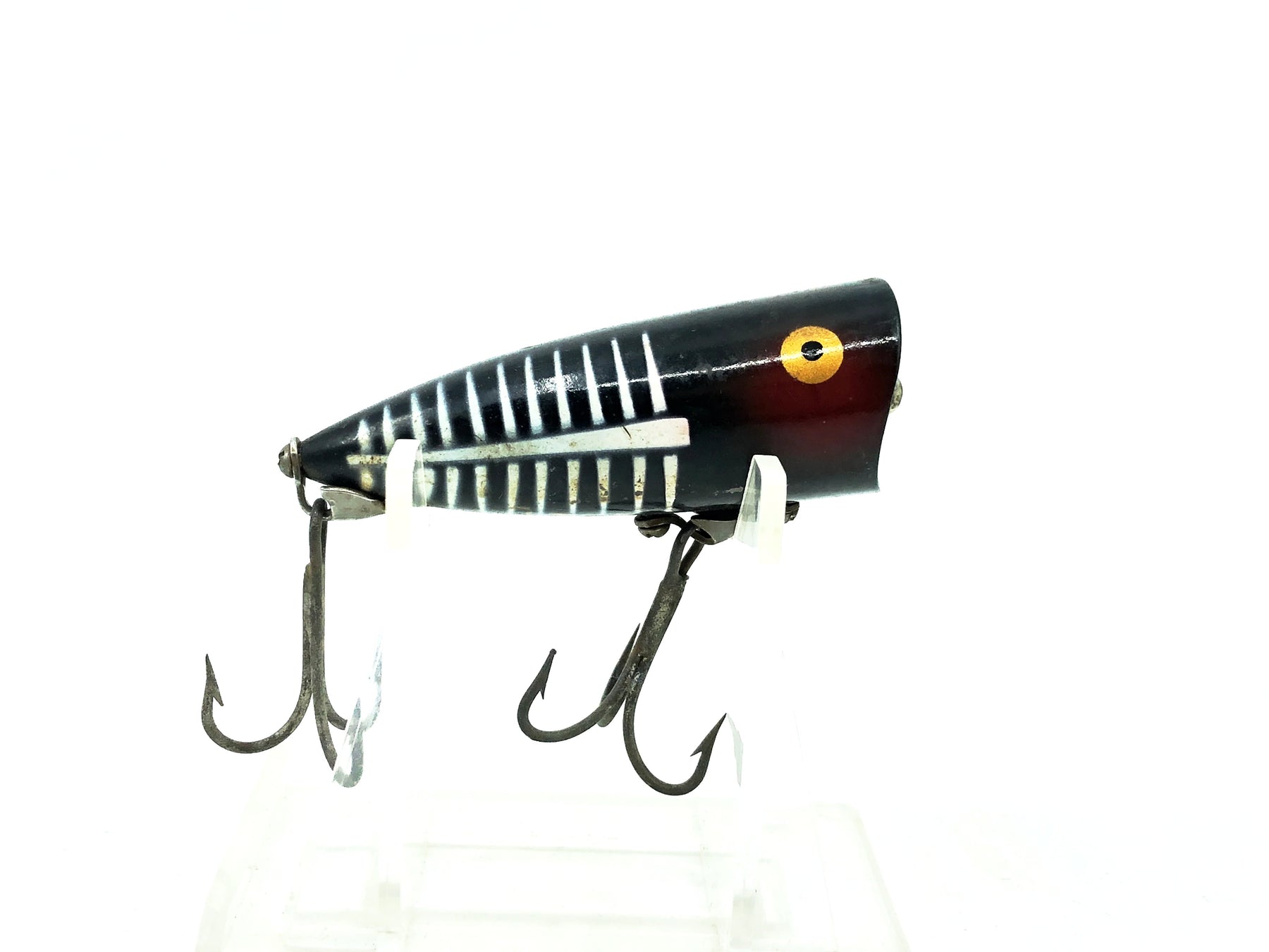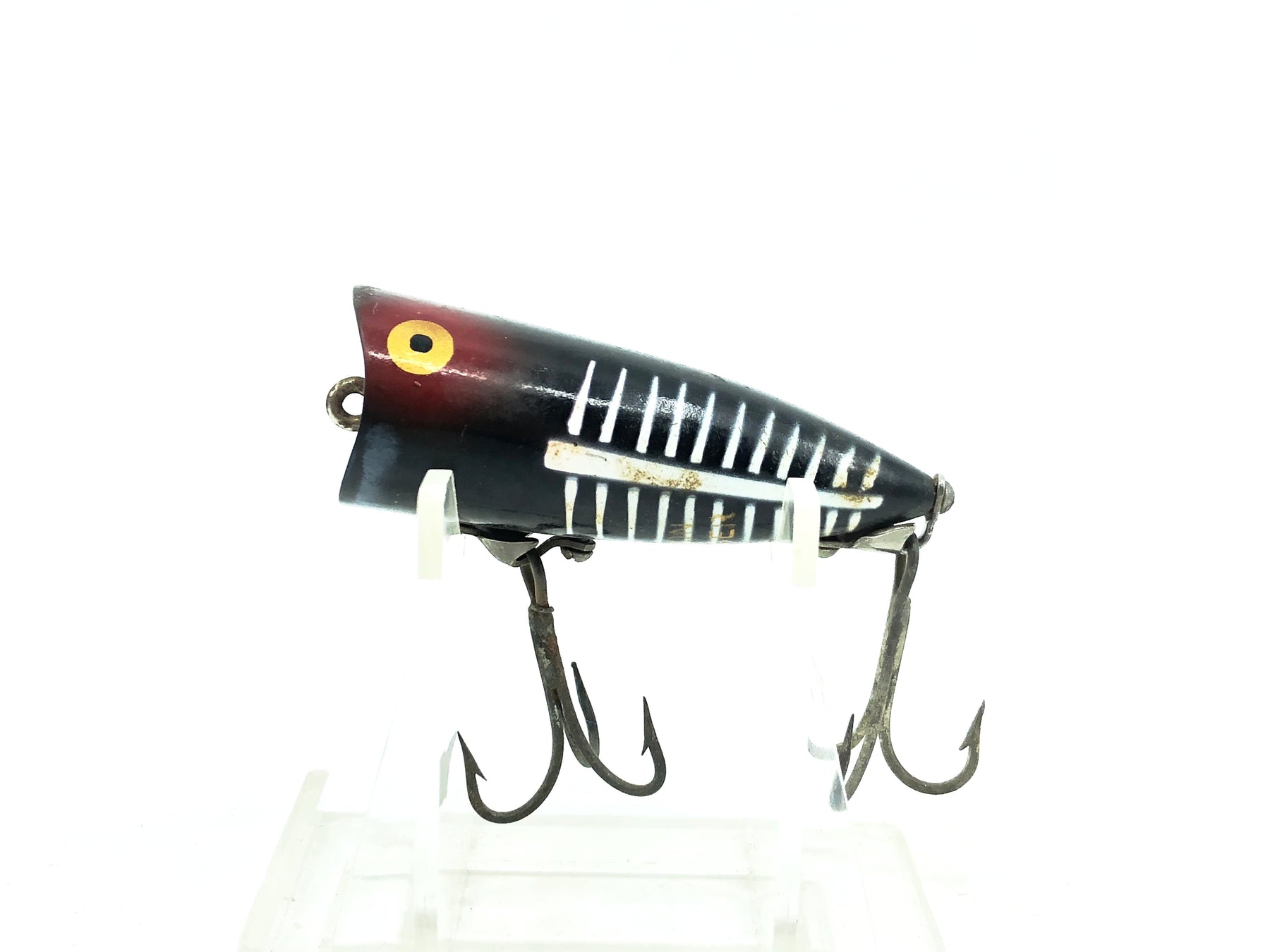 Heddon Chugger Spook Jr. 9520, XBW Black Shore Minnow Color. Classic Heddon bait here. Lure is about 2 1/4" long. Used but in good condition with some wear and minor marks, see photos. Tougher lure to find. Fish or collect.