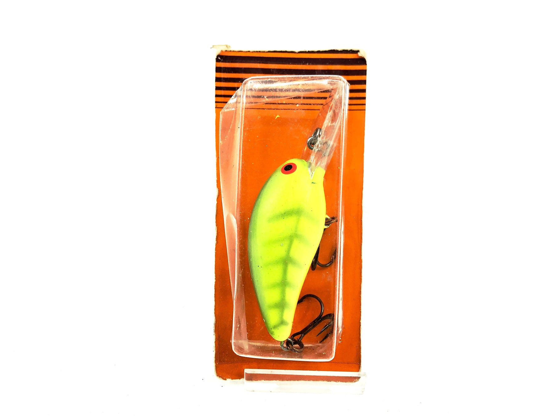 Bomber Model A 6A, DFY Dull Fluorescent Yellow/Orange Belly Color on Card. Early 90s lure with half of the card cut off. Great lure here. About 2 1/8" excluding lip. Lure is new on card. Card is in good condition aside from being cut. Fish or collect. See photos.