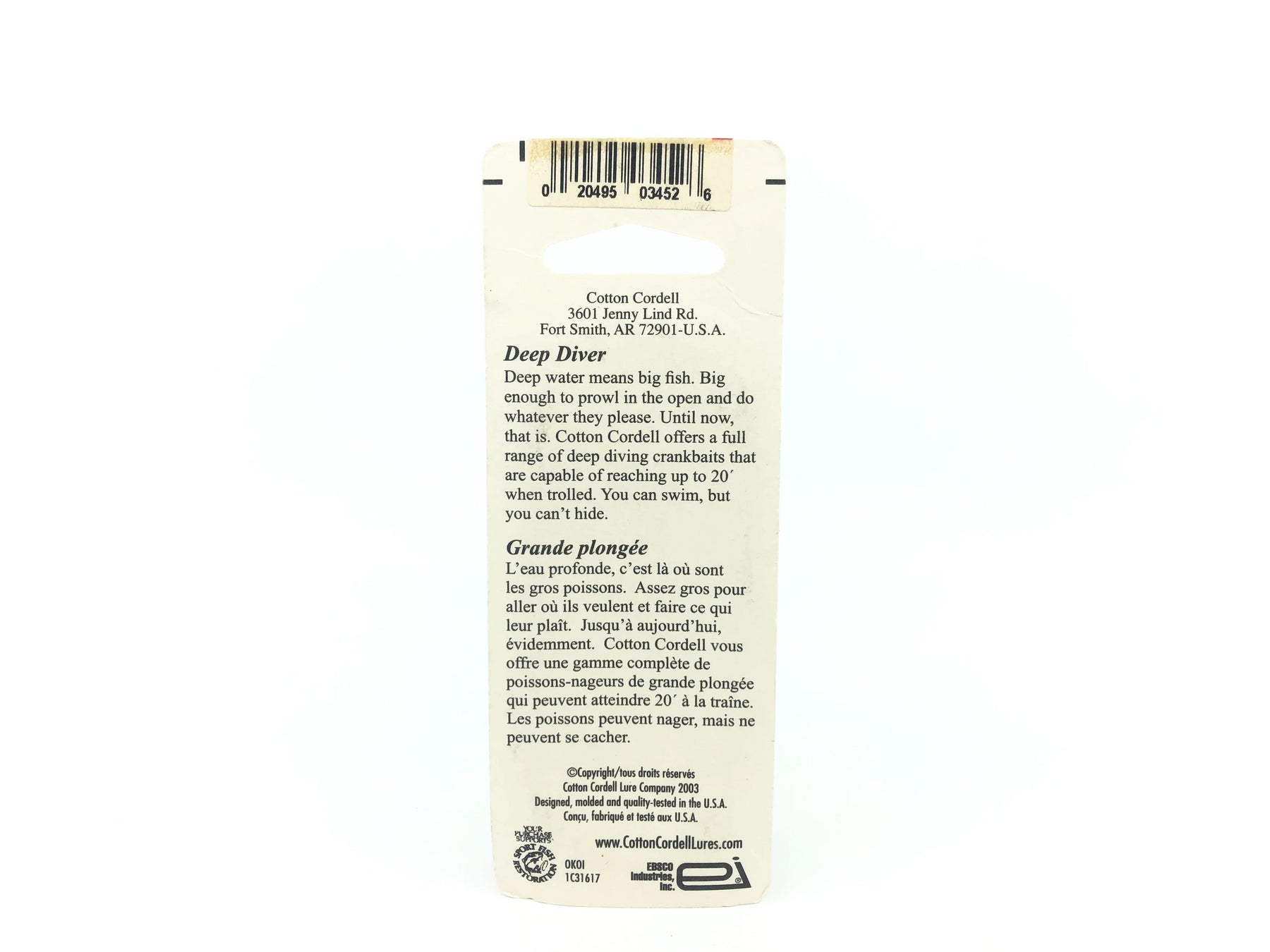 Cordell Wiggle-O, Hot Craw Bug Color on Card