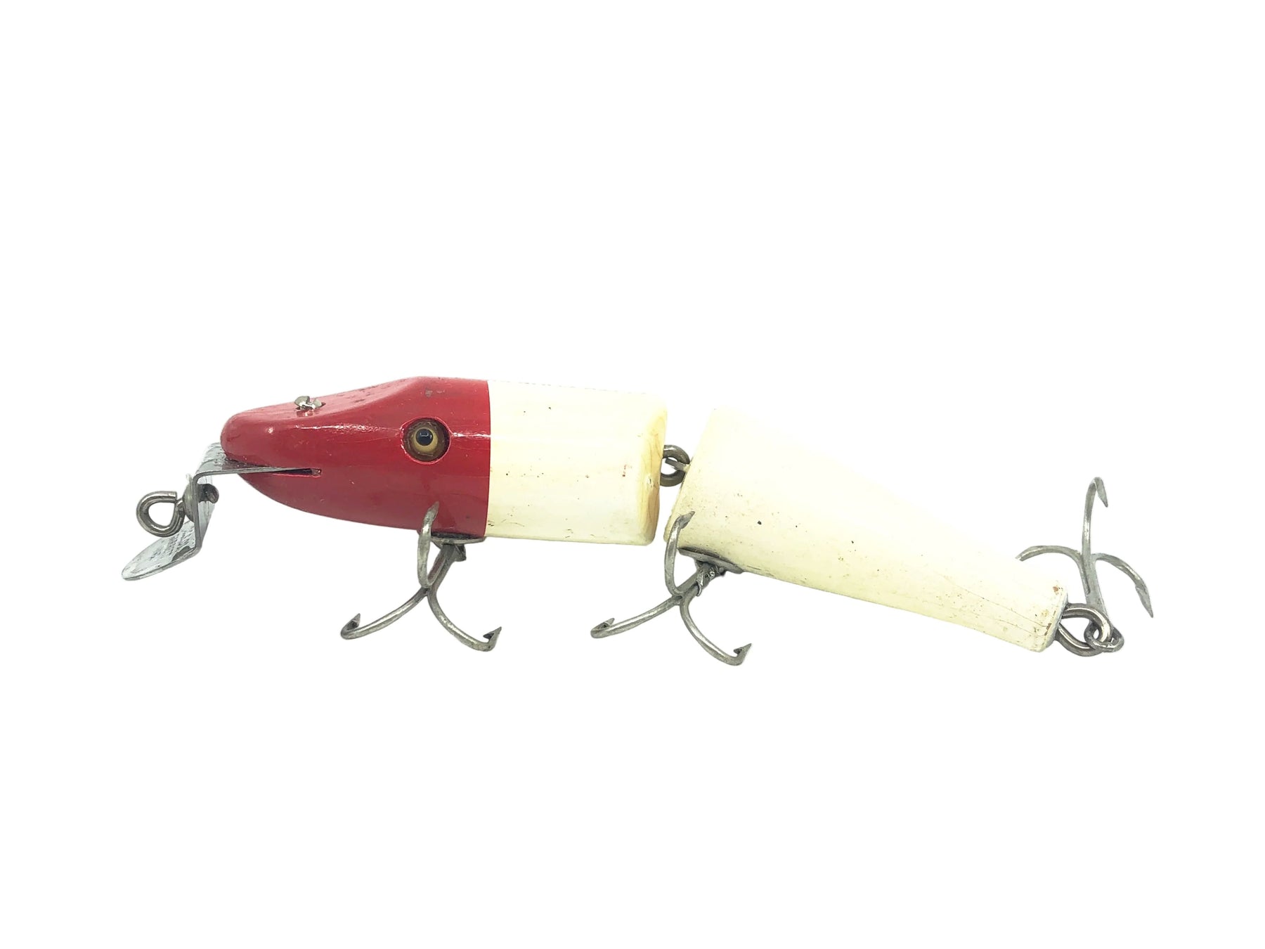 Creek Chub 2600 Jointed Pikie Minnow, Red Head/White Color 2601 Glass Eyes. About 4 1/2" long. Vintage wooden lure with glass eyes. The Creek Chub Jointed Pikie was made from 1926 - 1978 and was one of the most famous Creek Chub lures. This one is vintage used with some wear as shown but still in overall good condition, see photos. Collect or fish this great vintage lure.
