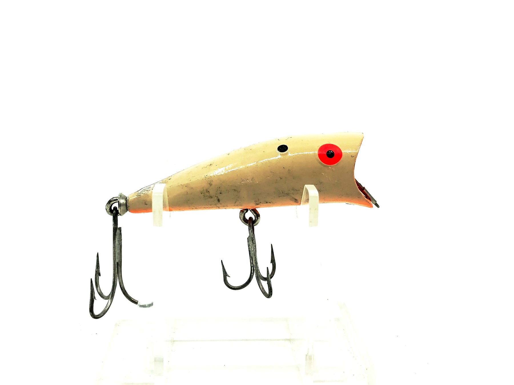 Bomber Popper 2T, BN Bone Color. About 2 1/2" long. Lure is used with some wear and marks but overall in ok condition. Harder bomber bait to find. Fish or collect. See photos.
