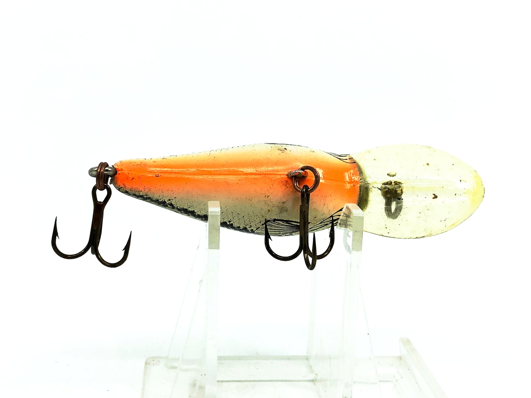 Bomber Model A 6A, XBBO Baby Bass/Orange Belly Color Screwtail Model. Great lure here. About 2 1/8" excluding lip and in good condition with some minor wear. Fish or collect. See photos.