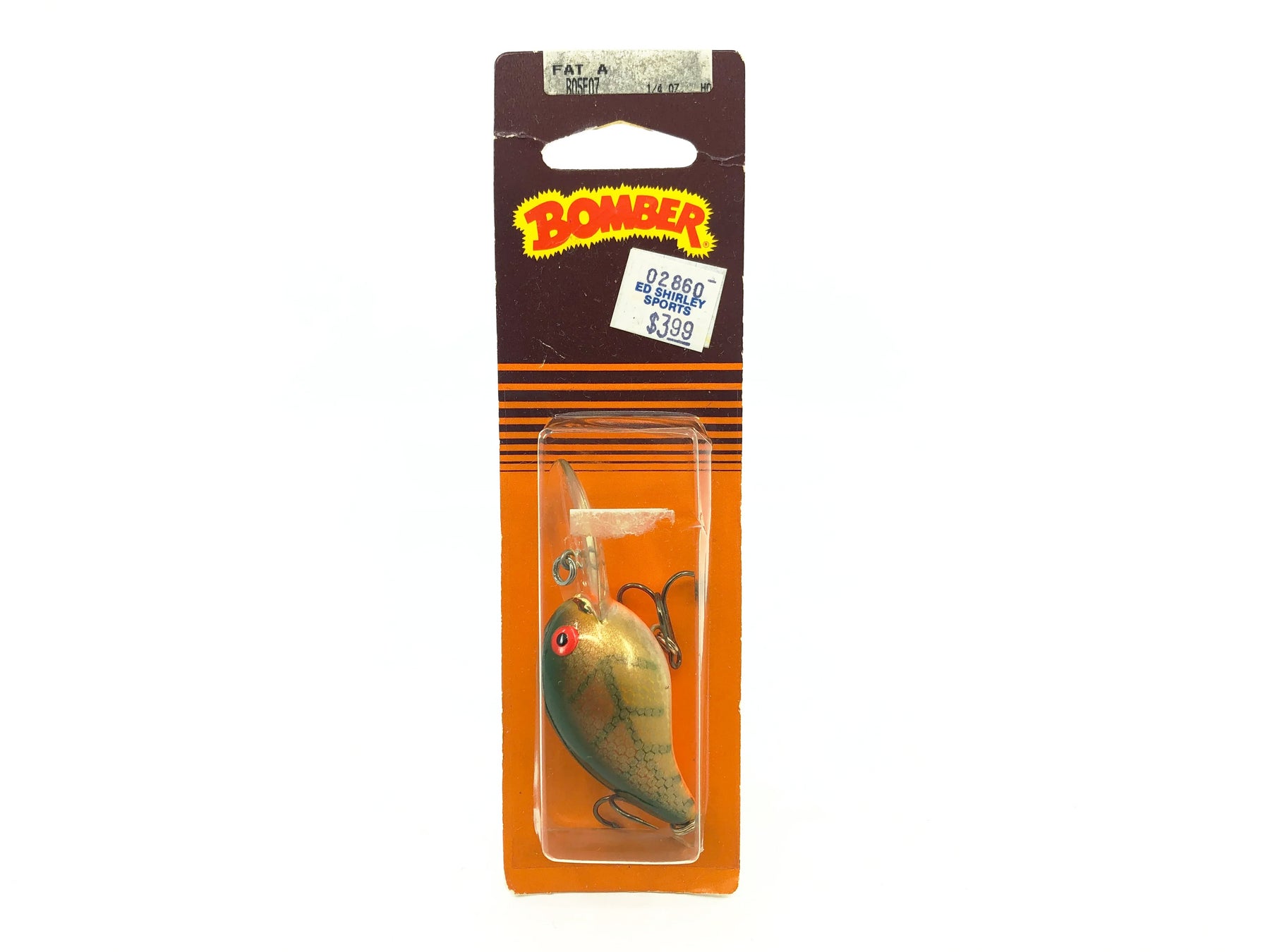 Bomber Fat A 5F, #07 Perch Color on Card. Early 90s lure here. About 2 7/8" including lip. Lure is new on card. Card is in good condition with some minor wear. Fish or collect. See photos.