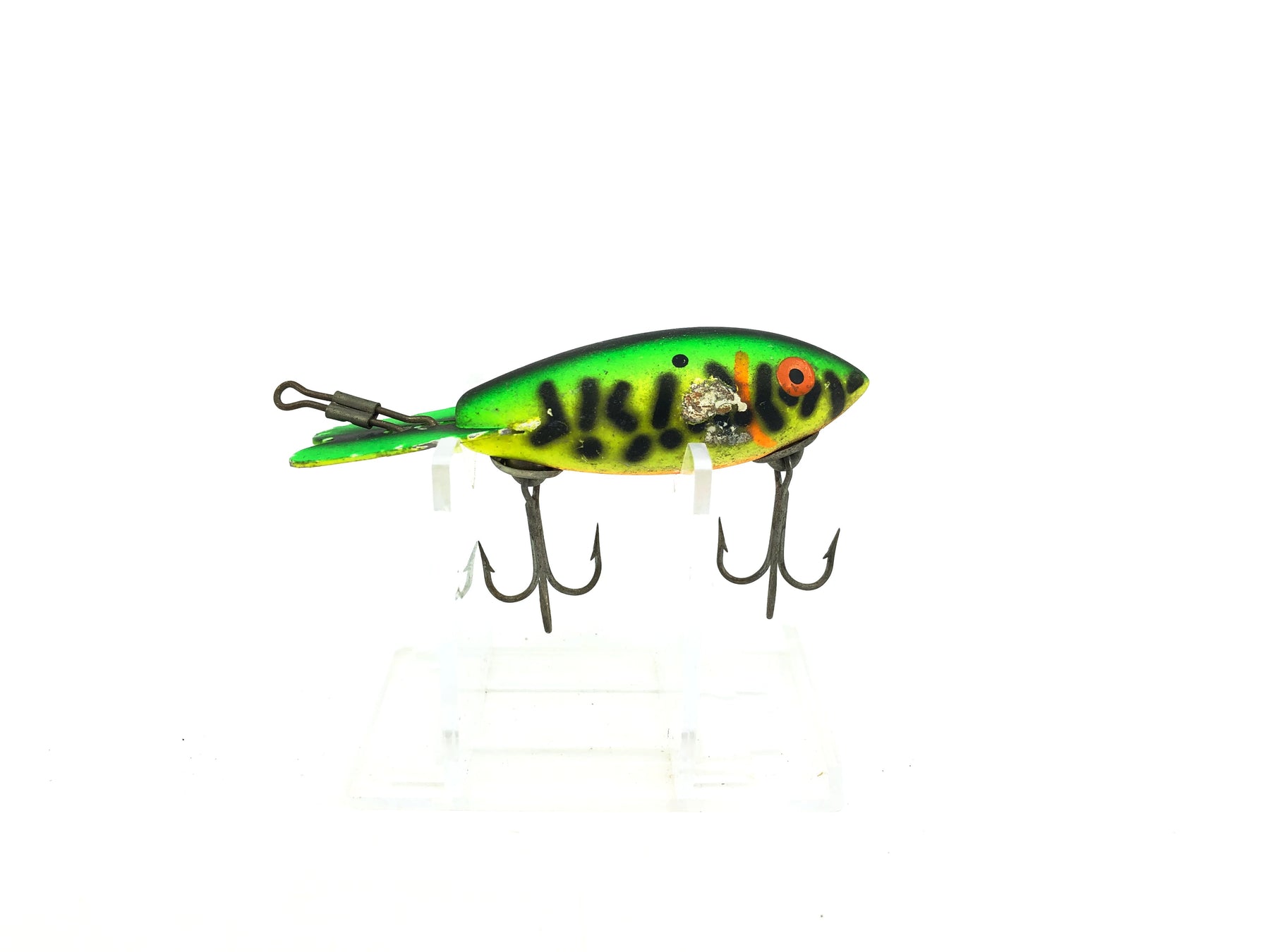 Bomber 300 Series, FT Fire Tiger Color. Lure is about 2 3/4" long. Used but in ok condition with some wear and missing paint. Classic lure that isn't made anymore fish or collect. See photos. Plastic version with rattles.