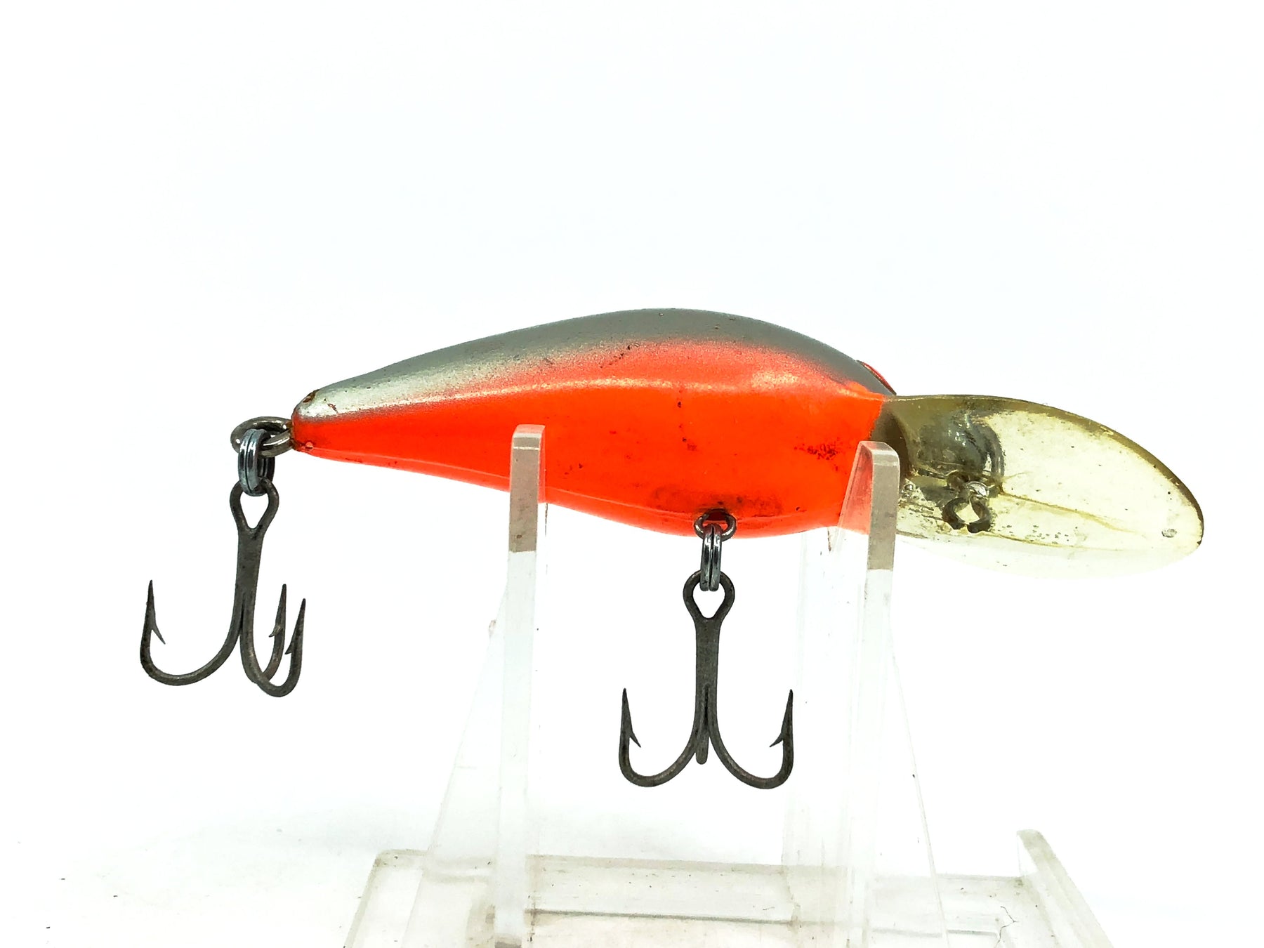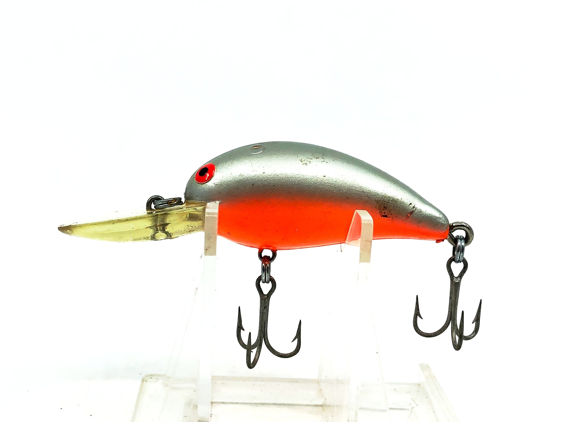 Bomber Model A 6A, Color Clector CC7 Grey Over Blaze Orange Color. About 2 1/8" long excluding lip. Used with some minor wear and a mark on the top but overall good condition and a mark on top, see photos. Fish or collect! Great vintage lure! Screwtail.
