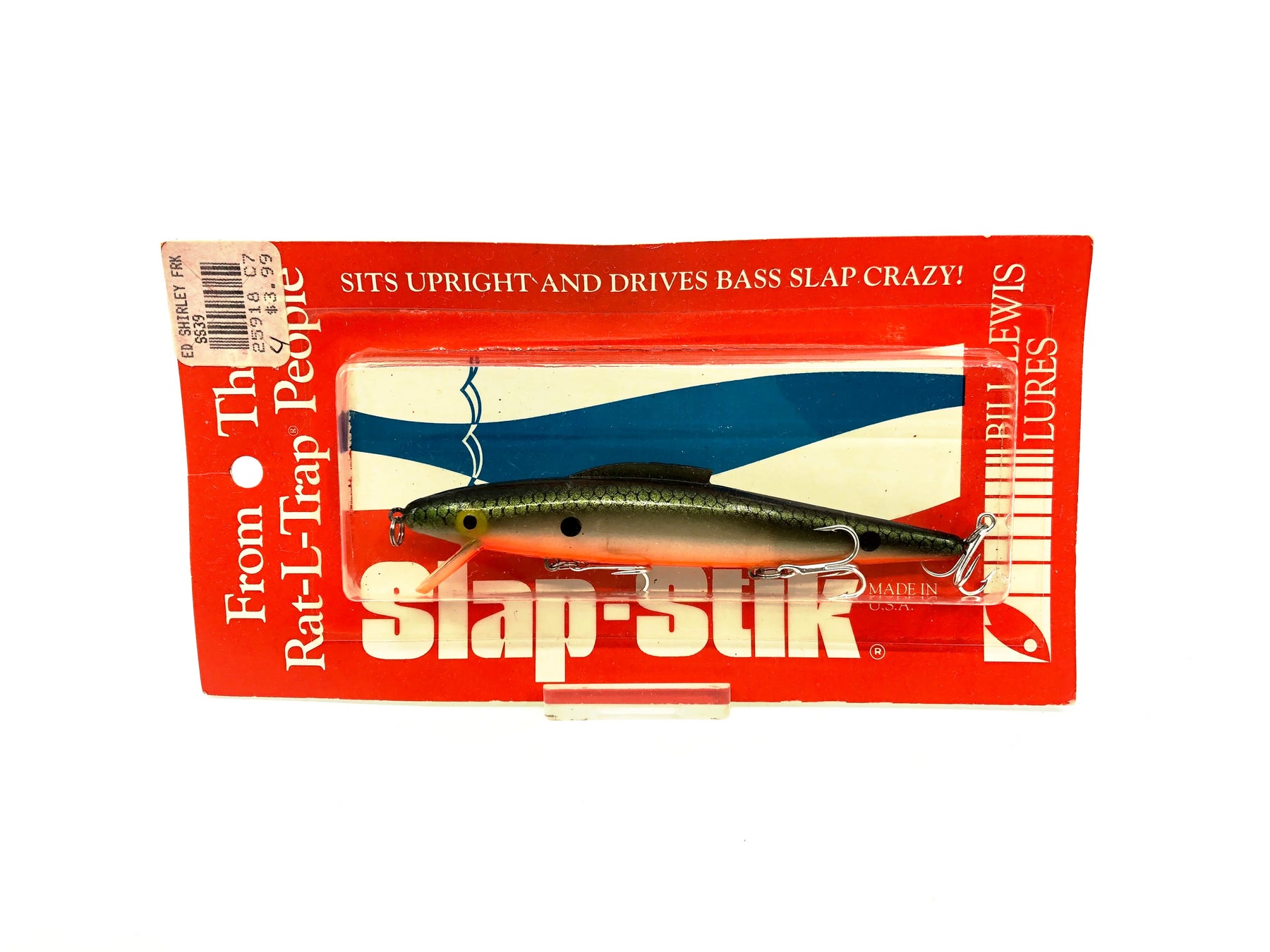 Bill Lewis Slap-Stik, 39 Gold Tennessee Shad Color on Card. Great discontinued bait here. This Bill Lewis bait is about 4 3/8" long. Lure is new on card and card is in great condition. See photos.