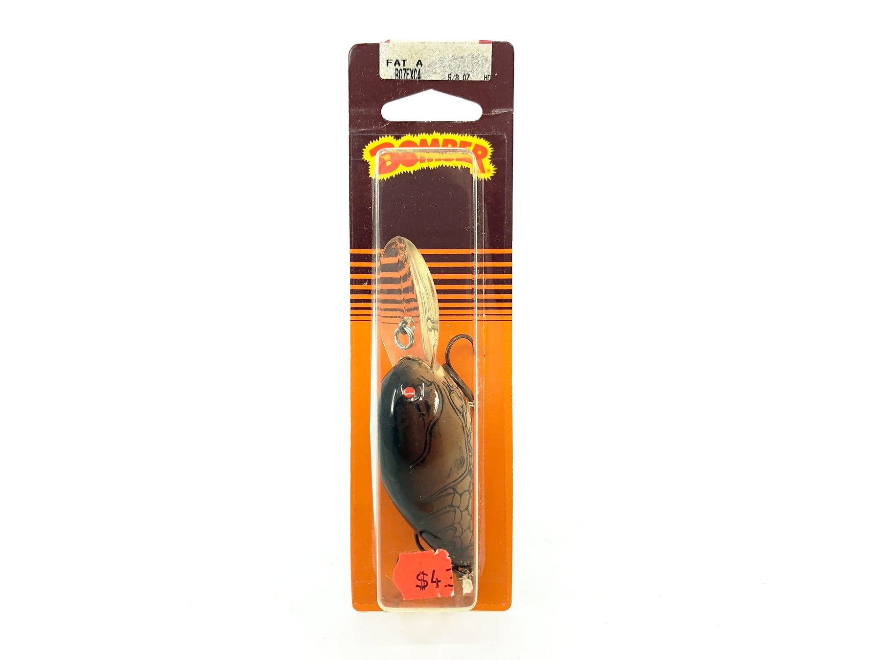 Bomber Fat A 7F, XC4 Dark Brown Crawdad Orange Belly Color on Card. Early 90s lure here. About 3 3/4" including lip (about 2 1/2" body). Lure is new on card. Card is in good condition with some minor wear. Fish or collect. See photos.