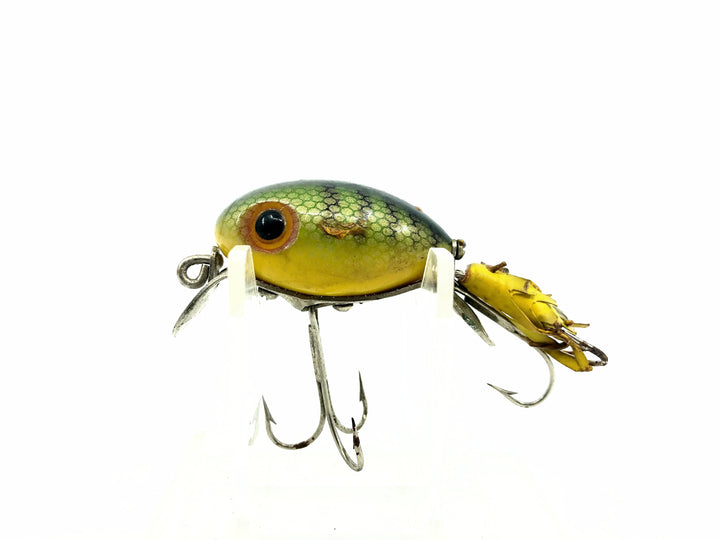 Arbogast Hula Dancer, P Perch Color. Classic Arbogast lure here at about 2" long total. Used with wear and minor marks but still overall in ok condition, see photos. Still in good enough condition to fish or display!