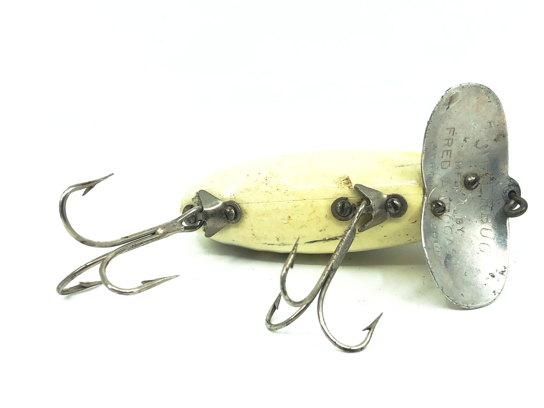 Jitterbug, World's best surface bait! Jitterbugs wobble. . . the double-lobed "lip" creates a loud paddling noise . . . takes bass day or night. Retrieve continuously or by hesitation.