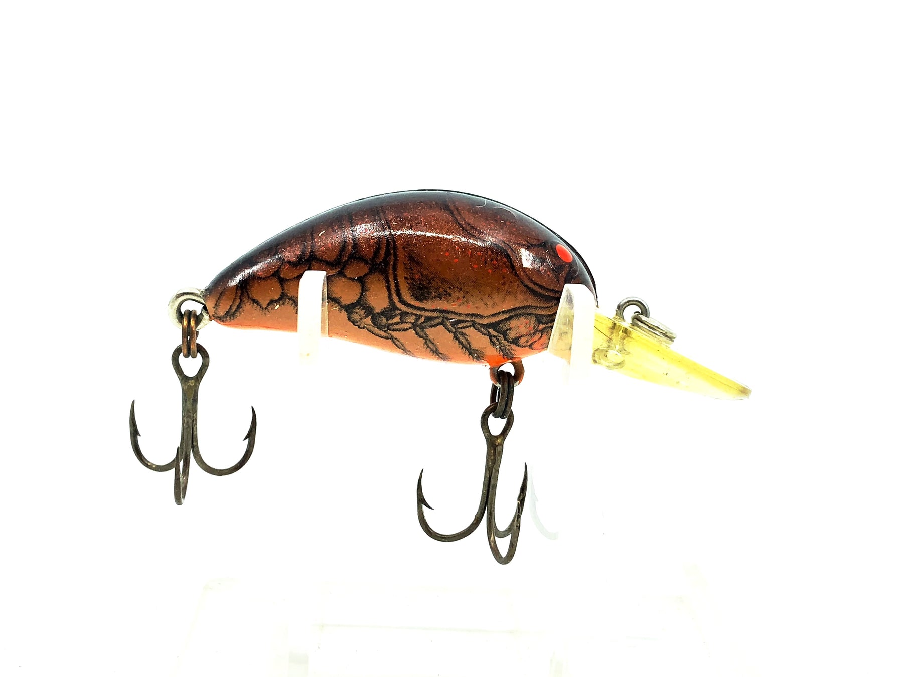 Bomber Model A 5A, XC4 Dark Brown Craw Orange Belly Color Screwtail Model. About 2 1/2" long including lip. Used with some minor wear but overall good condition, see photos. Fish or collect! Great vintage lure! Screwtail version.