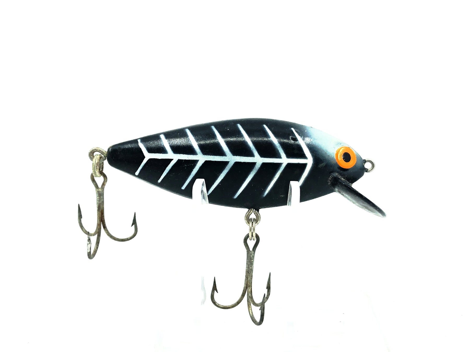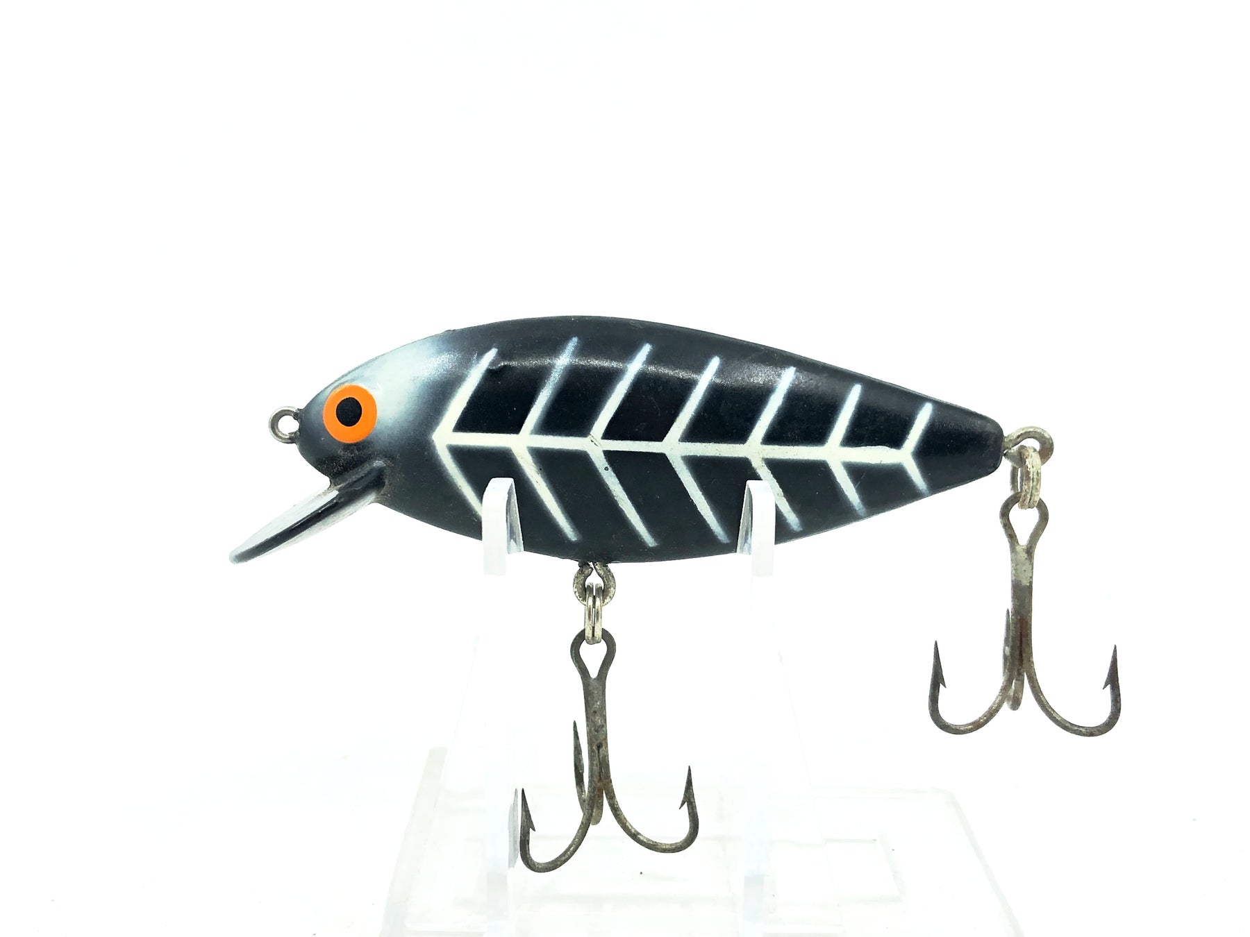 Bomber Speed Shad 4S, #14 Black/White Ribs Color. About 3" long body not including lip. Used vintage lure with some minor wear but overall good condition, see photos. Classic Bomber lure that hasn't been made in years. One of the all-time greatest lures for fishing. Bass, pike, musky, walleye and more! Fish or collect.