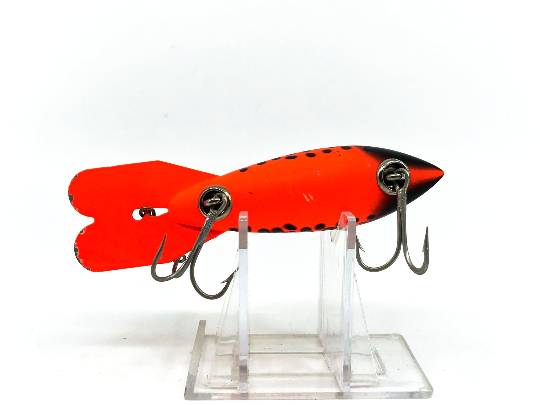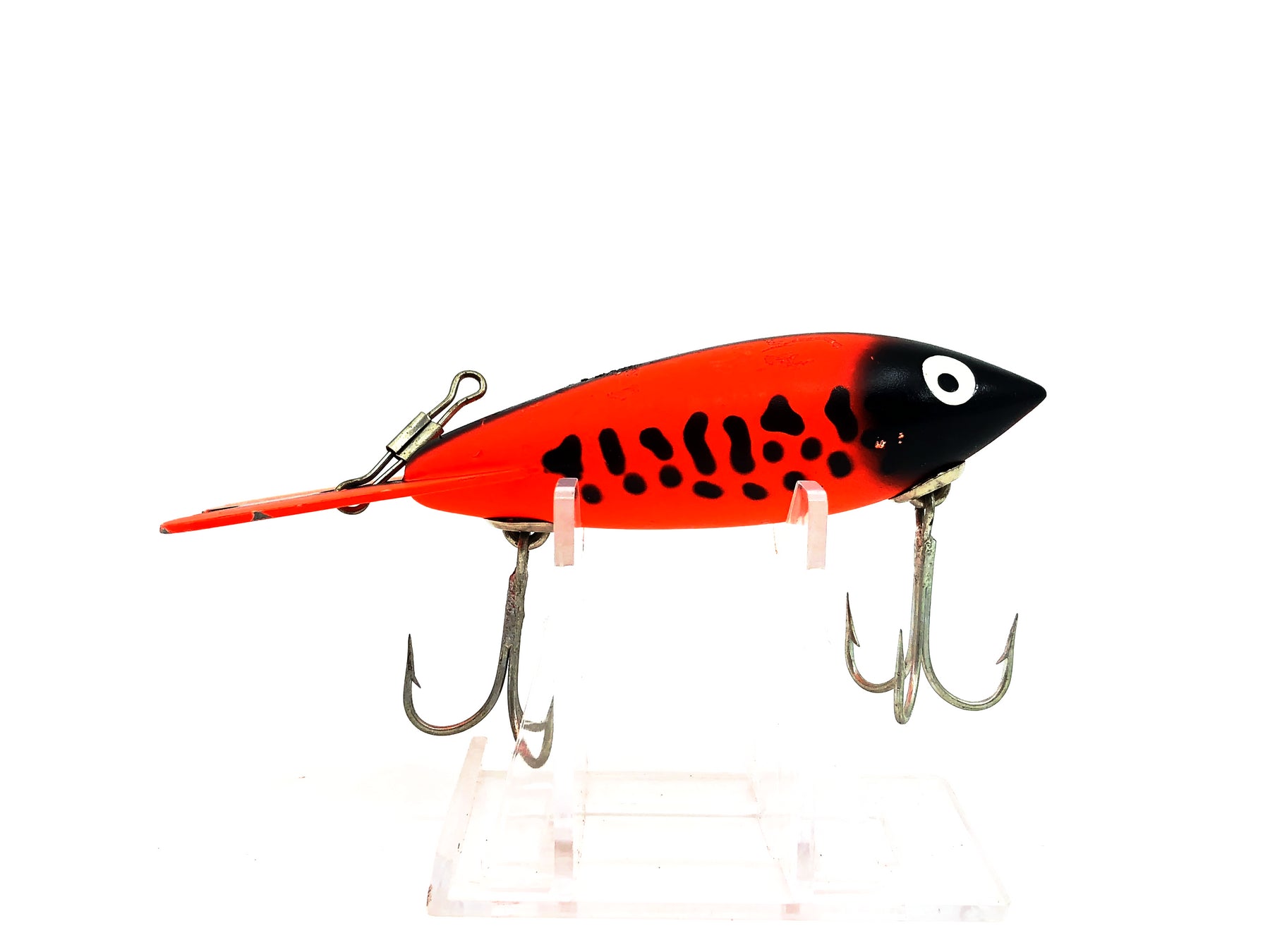 Bomber 600 Series, BOBB Blaze Orange Tiger Color. About 4" long. Lure is used with some wear but overall in good condition, see photos. Classic lure that isn't made anymore. Fish or collect. Plastic version, has rattles.