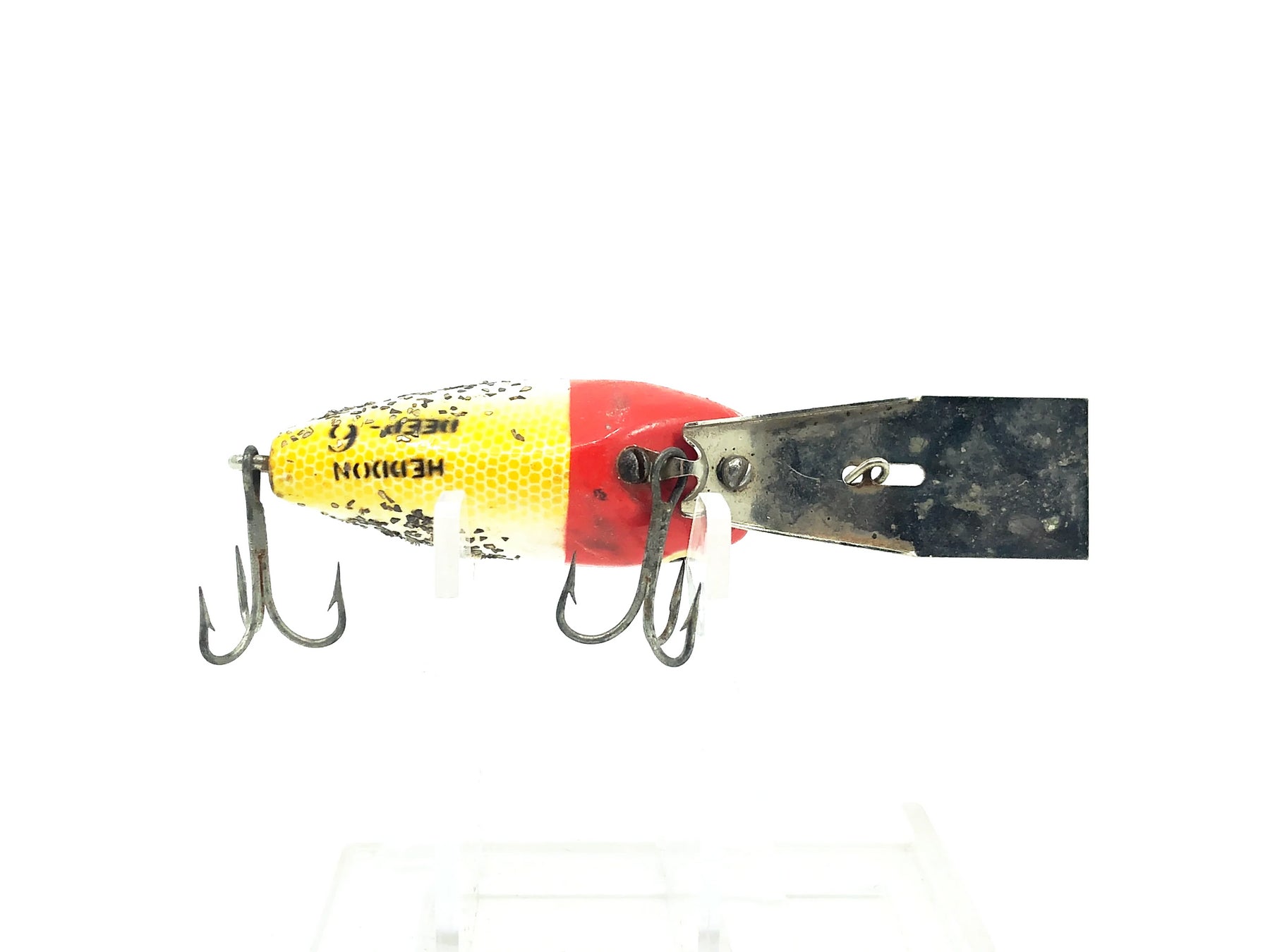 The Heddon Deep Six was made from 1962 to1971. This lure was designed to perform well in submerged weed beds. Although this bait had a short lifespan it helped create other classic Heddon baits such as the Devil Divers.