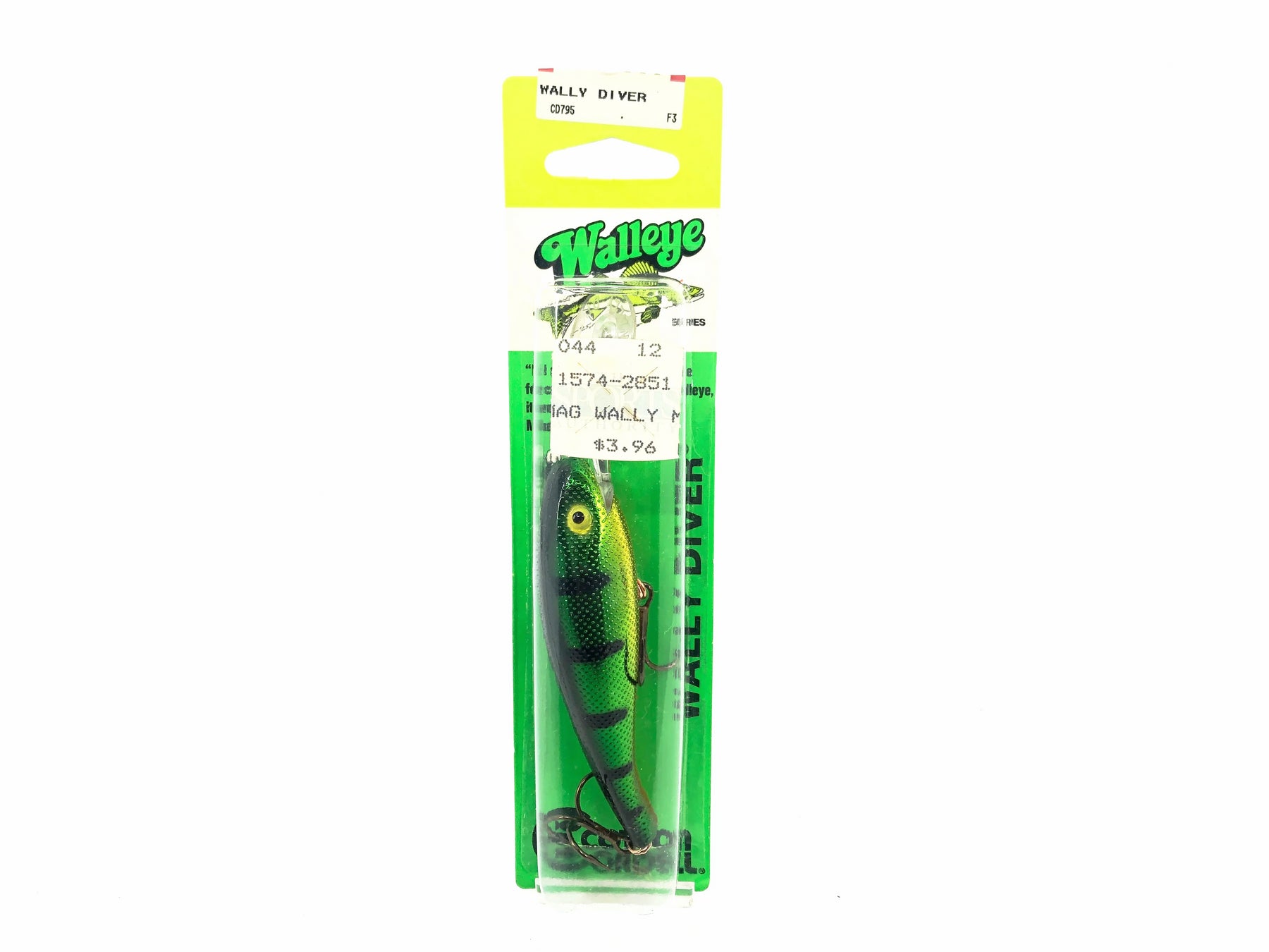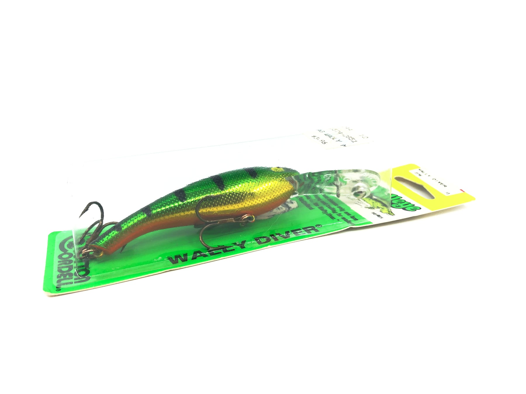 Cotton Cordell Wally Diver CD-7, #95 Gold Perch Color on Card.  About 5" long including lip.  Card has some minor wear, lure is new on card. Great to fish or collect.  New old stock here.  See photos.