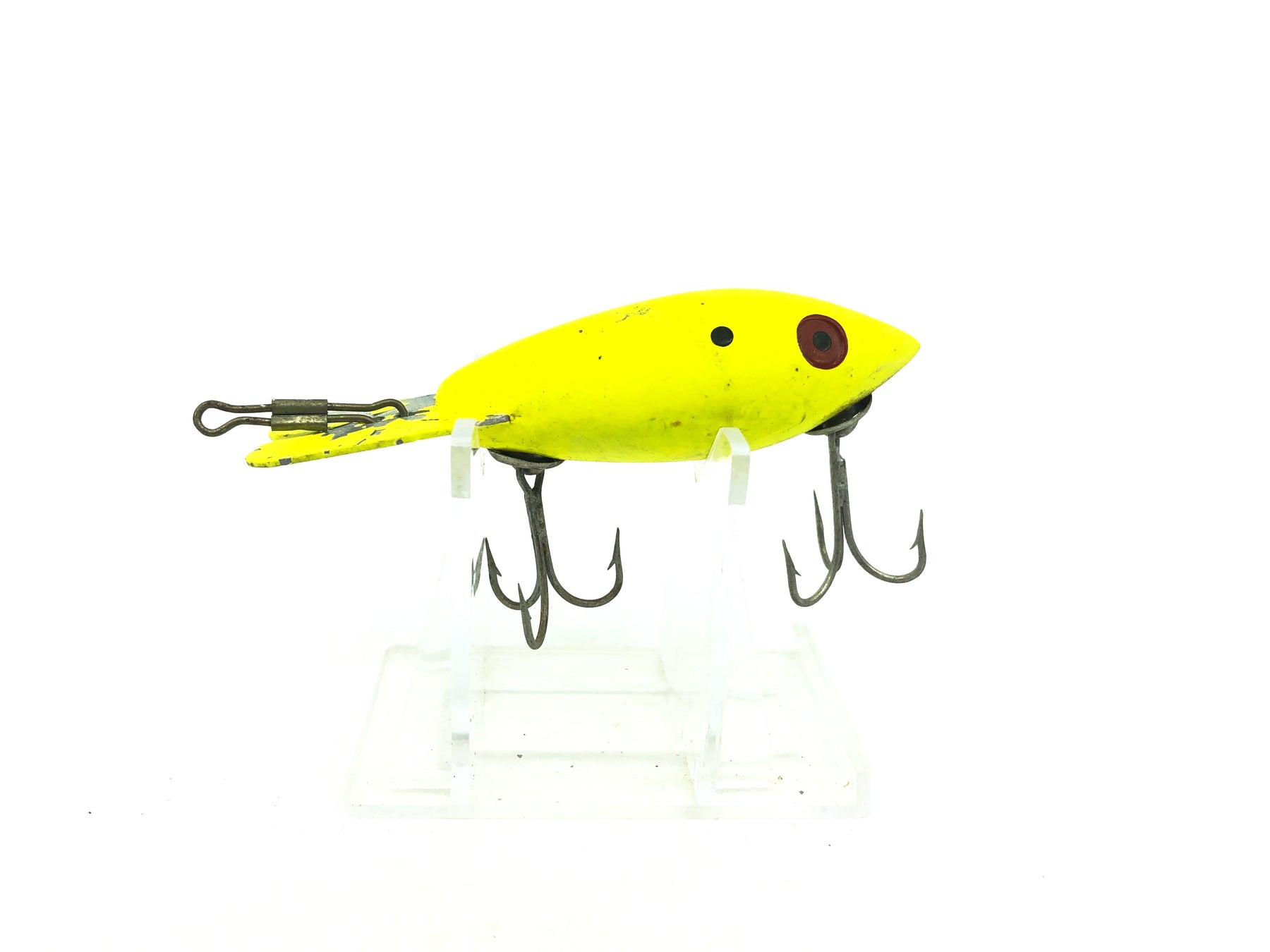 Bomber 400 Series, FY Chartreuse Color. About 3 1/4" long. Lure is used with some wear but overall in good condition, see photos. Classic lure that isn't made anymore. Fish or collect. Plastic version, with rattles.