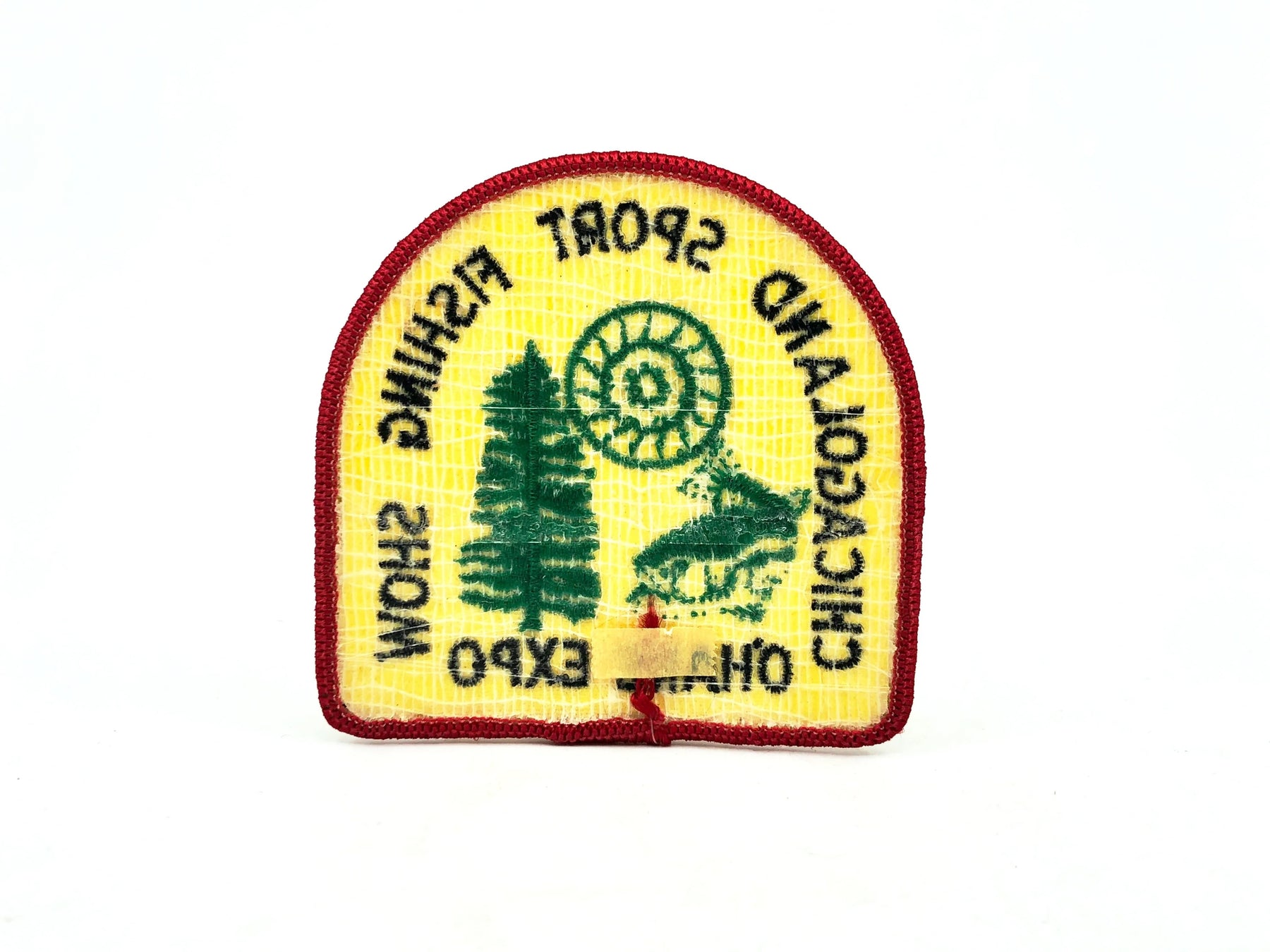 Chicagoland Sport Fishing Show Patch. About 3" x 3".  Unused and in nice overall condition.  See photo.  These look awesome with your fishing lure display or put on your fishing gear.  Add to your collection today!