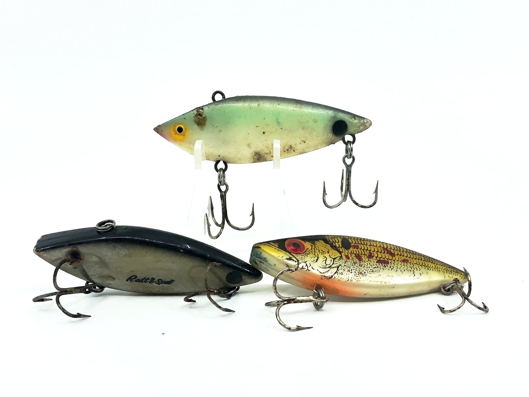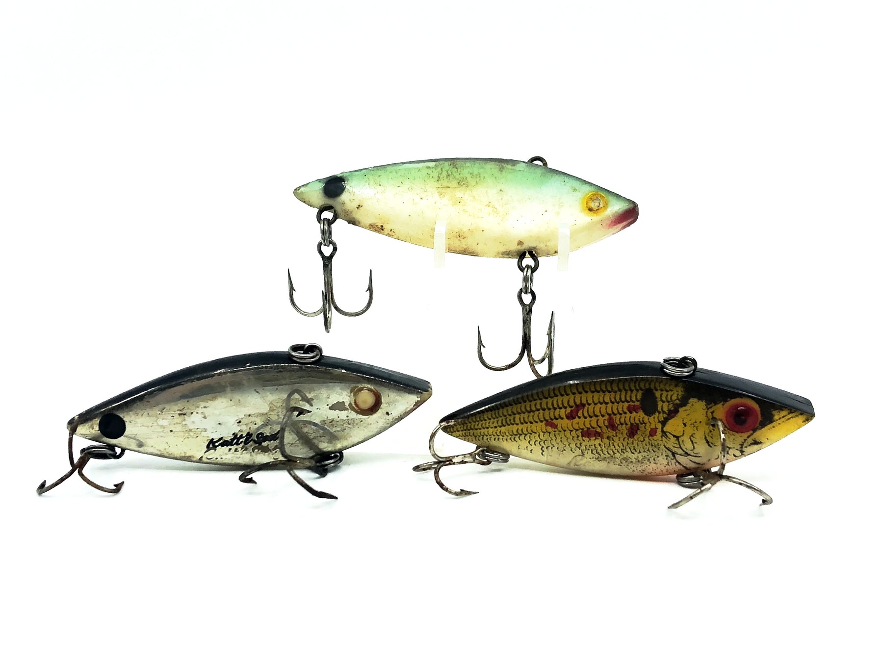 Cordell Th' Spot Trio. Great pack that includes three vintage Cordell Spots of varying ages. All lures are different colors and are 3" long. These are used with some wear but overall good condition, see photos.  Fish or collect.