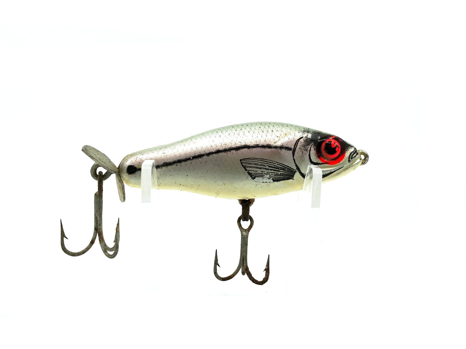 Bomber RRIIP Shad (Rip Shad), 36T #40 Silver Shad Color. Bomber lure that was only made for a few years. About 2 1/2" long. Used with some wear and marks but in good condition, see photos. Great Bomber lure here. Fish or collect.